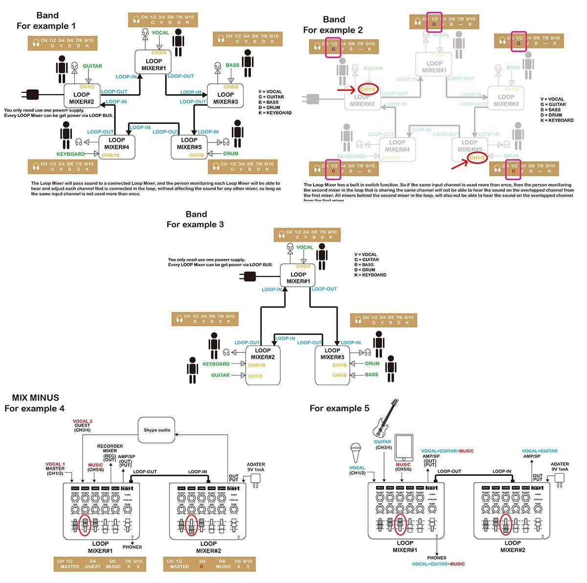 Maker hart Loop Mixer 5チャンネルステレオ音声ミキサー (フルセット, 白い)