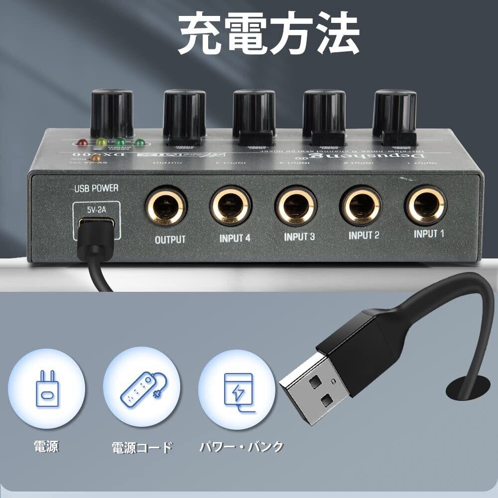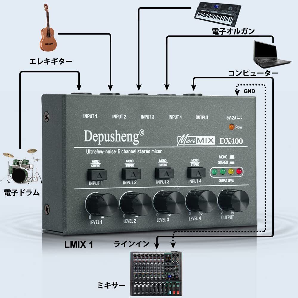 オーディオミキサー、Depushengポータブルステレオラインミキサー-DC 5V 4チャンネル、マイク、ギター、キーボード、またはACアダプターとステレオ/モノラル調整付きステージサブミキサーとして、クラブやバーに最適
