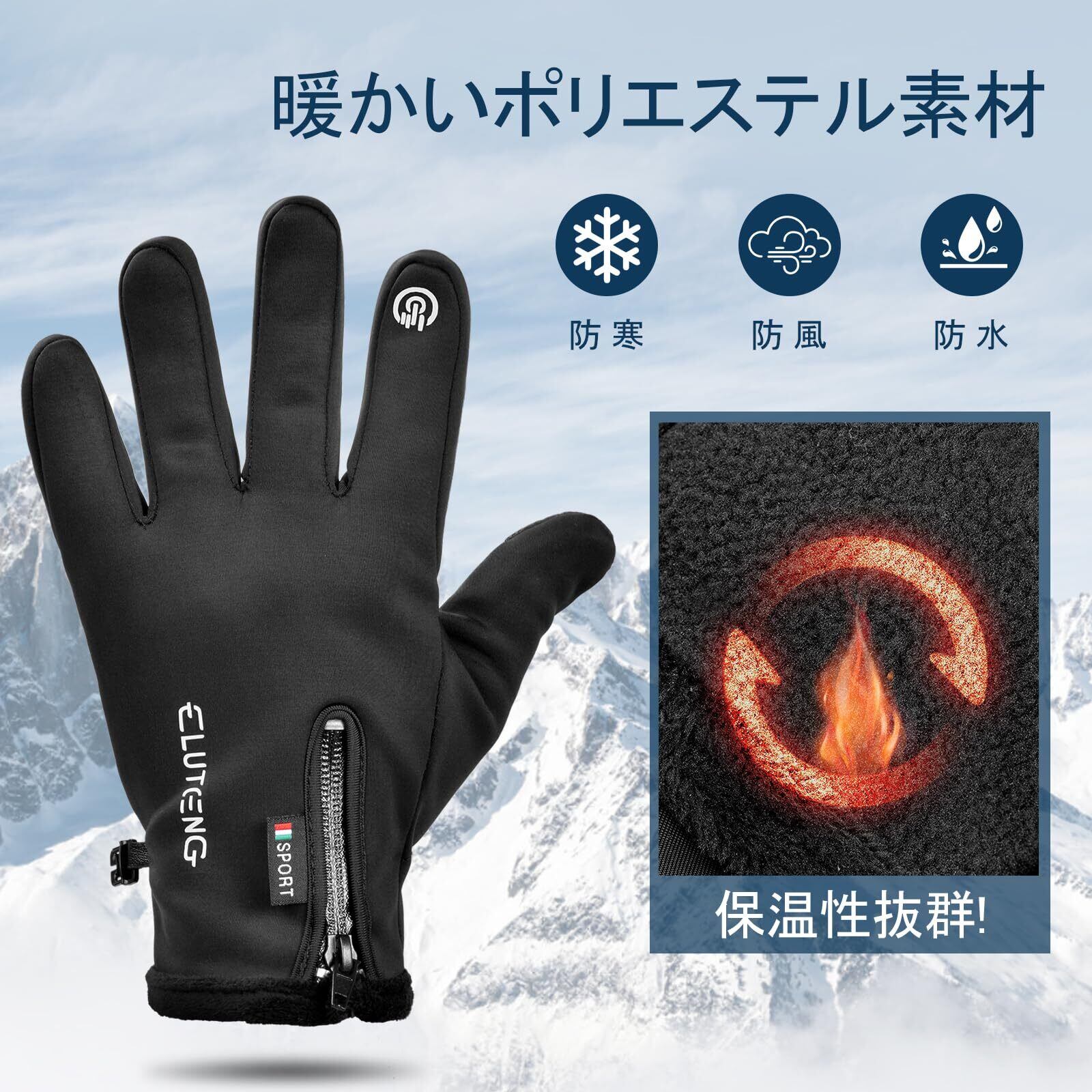 【2022最新】登山 釣り アウトドアグローブ 通学 通勤 防寒グローブ ブラック スマホ対応 保温 裏起毛 Bicycle 自転車手袋 耐磨耗性 滑り止め Gloves 防水手袋 バイクグローブ 冬 Winter 自転車グローブ 防寒手袋 ELUTENG