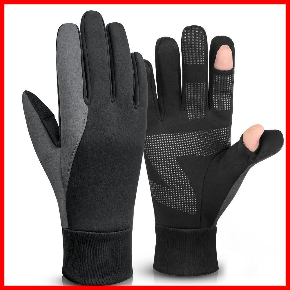 手袋 メンズ 防寒 スマホ対応 2本指出し 防寒手袋 ランニング グローブ 撥水 冬 中厚手 裏起毛 滑り止め 防風 釣り サッカー 自転車 登山 運転 ブラック S/M/L