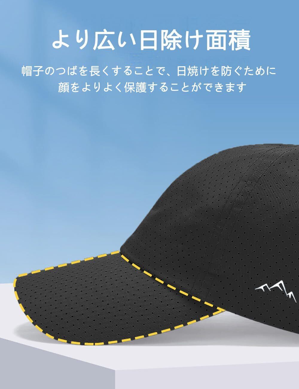 【軽量速乾·通気性抜群】この帽子は、通気性が非常に優れたメッシュ素材で作られているため、蒸れることはありません。また、素早く汗を吸い上げ、速乾性もあり、夏だけでなく一年中着用できます。