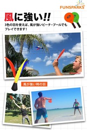 【 風に強い! 】3色の羽は風が強いときのためのシャトルです。風が強いビーチやプールでもプレイできます。