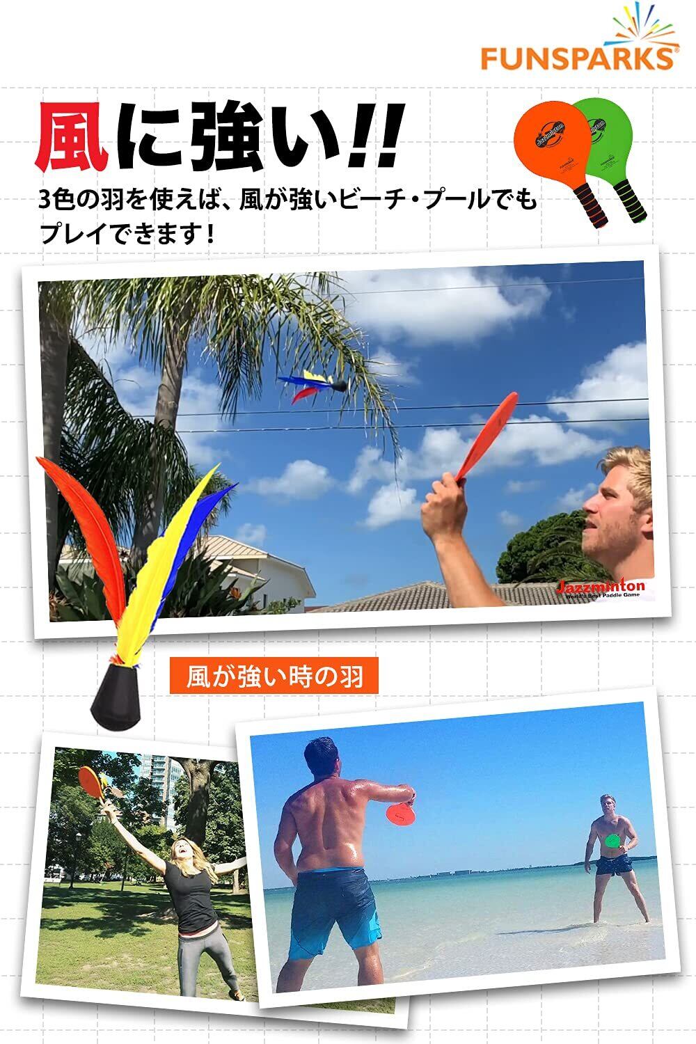 【全米で大ヒットのバドミントンセット】 ジャズミントン ビーチ バドミントン セット 卓球・テニスもできる ラケット シャトル 家族・仲間 初心者向け 風に強い 屋内 屋外 羽子板 日本正規代理店品
