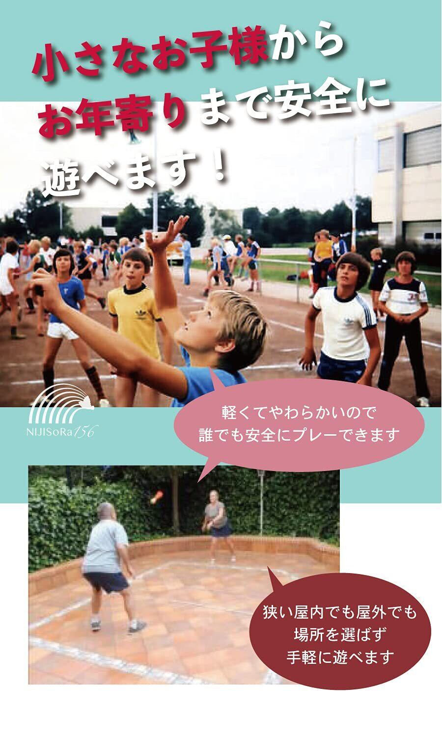 狭い屋内でも屋外でも場所を選ばず手軽に遊べます。またとても軽くて柔らかいので小さなお子さまでも安全に遊ぶことができます。