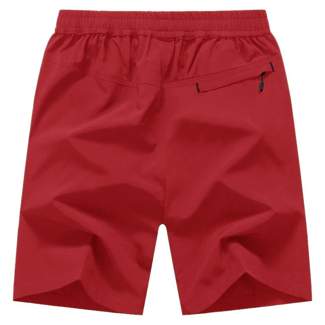 ウェスト部分は柔軟性のあるゴム仕様で、内蔵の紐も付き、サイズ調整は自由に行えますのメンズトレーニングショーツ。