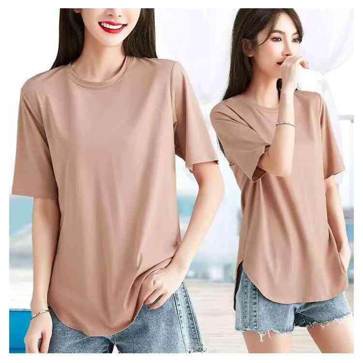 サマー レディース 半袖 接触冷感 トップス 5分袖 Tシャツ 春 夏 ヨガウェア ロング丈 ストレッチ 吸水 速乾 消臭 体型カバー ゆったり 20代 30代 40代 50代 60代 長め フィットネス スポーツ おしゃれ 可愛い 夏 薄手