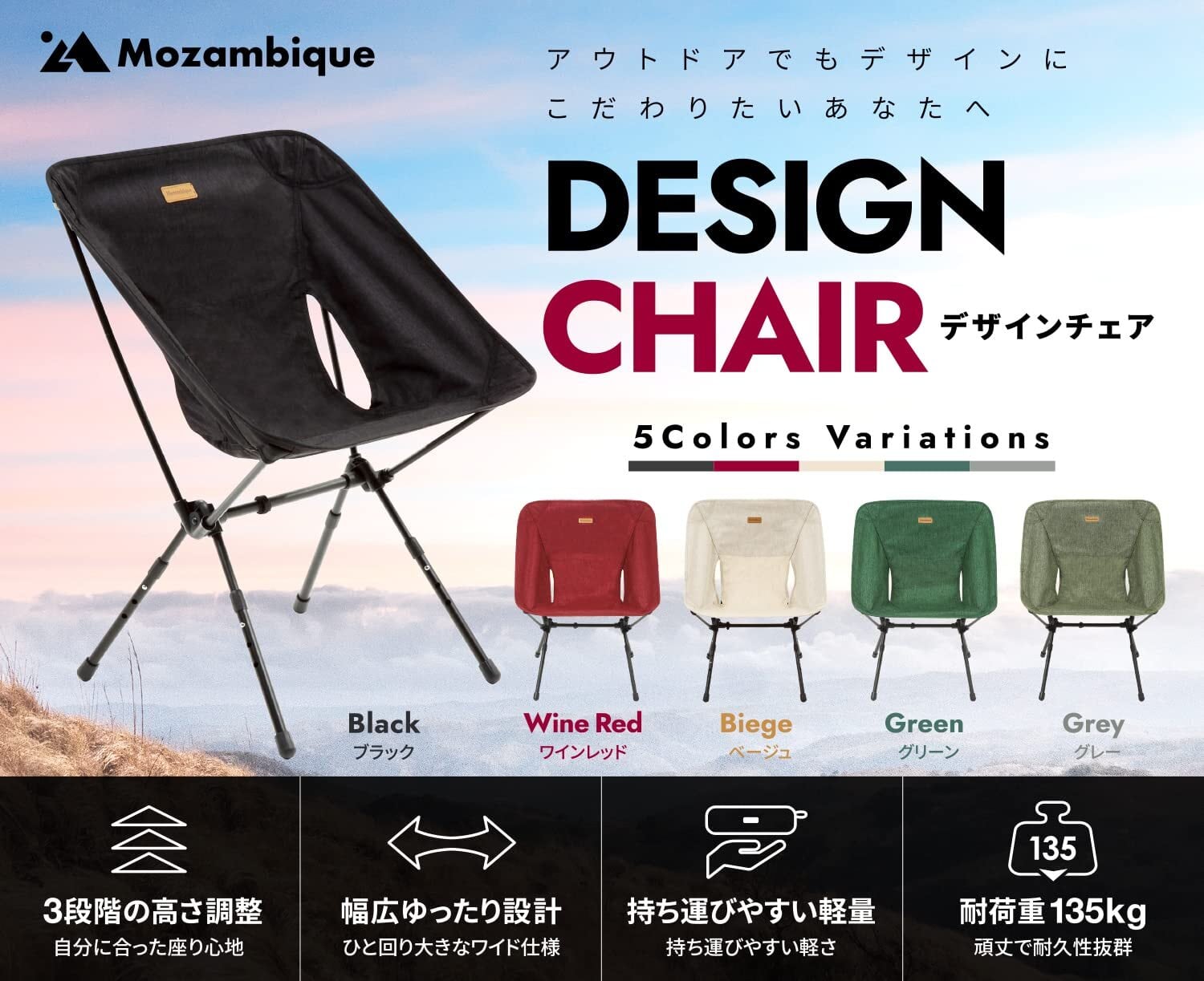 Mozambique(モザンビーク) アウトドア チェア キャンプ 椅子 折りたたみ 収納袋 コンパクト 軽量 アルミ オックスフォード 高さ調節 耐荷重135kg 【高さ調節可能でワイドなアウトドアチェア】