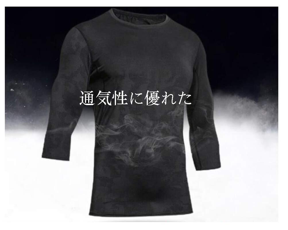 [ZDCGT] 多機能 スポーツインナー メンズ アウトドア スポーツシャツ メッシュ設計 インナー 吸汗速乾 UVカット Tシャツ ランニング トレーニング アンダーウェア コンプレッション 7分丈 通気 男性用