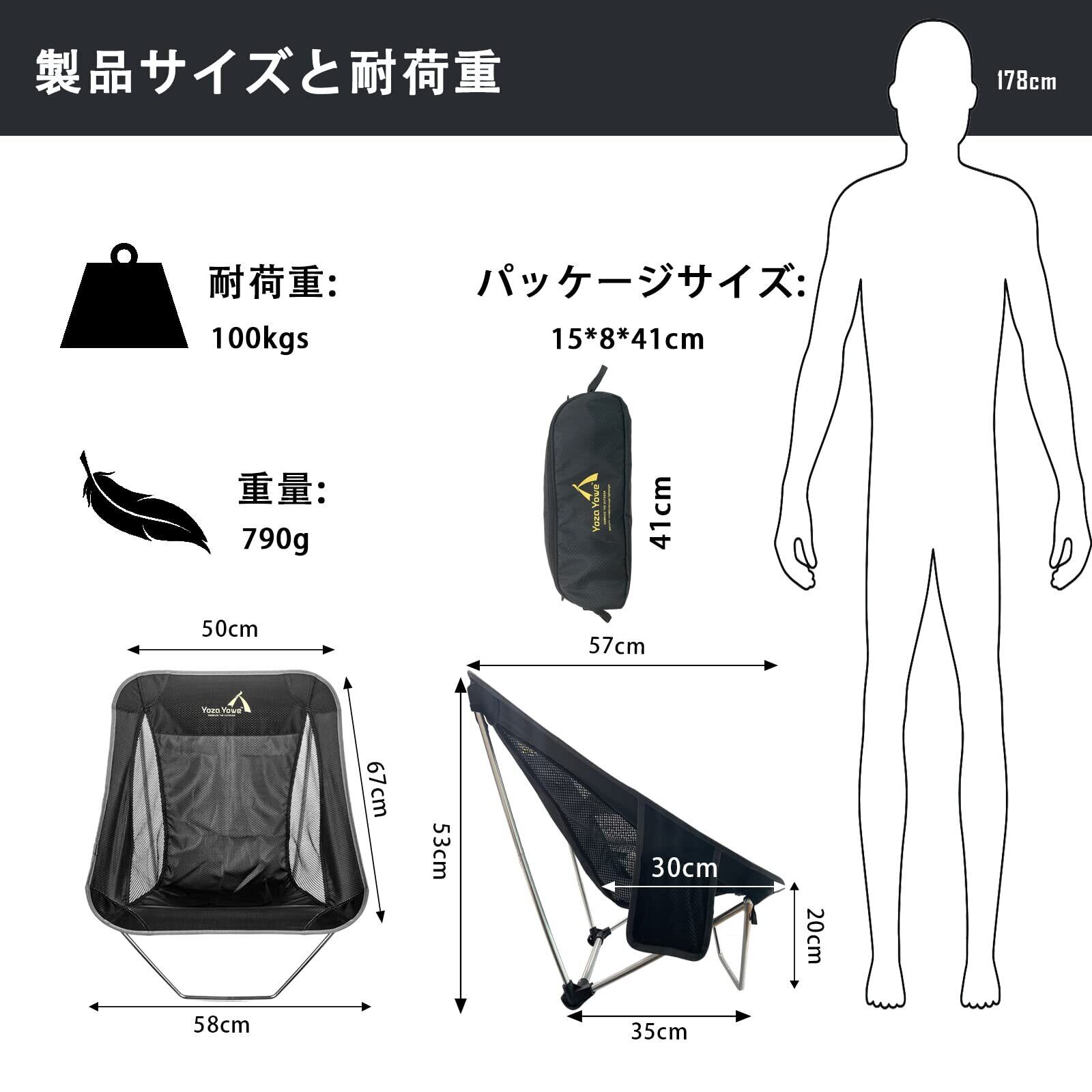 YozaYowe 超軽量折りたたみキャンプ椅子-790gコンパクトアルミアウトドアチェア キャリーバッグ付き 登山 グランドチェア チェアゼロ キャンプ ビーチ 釣り用 焚き火