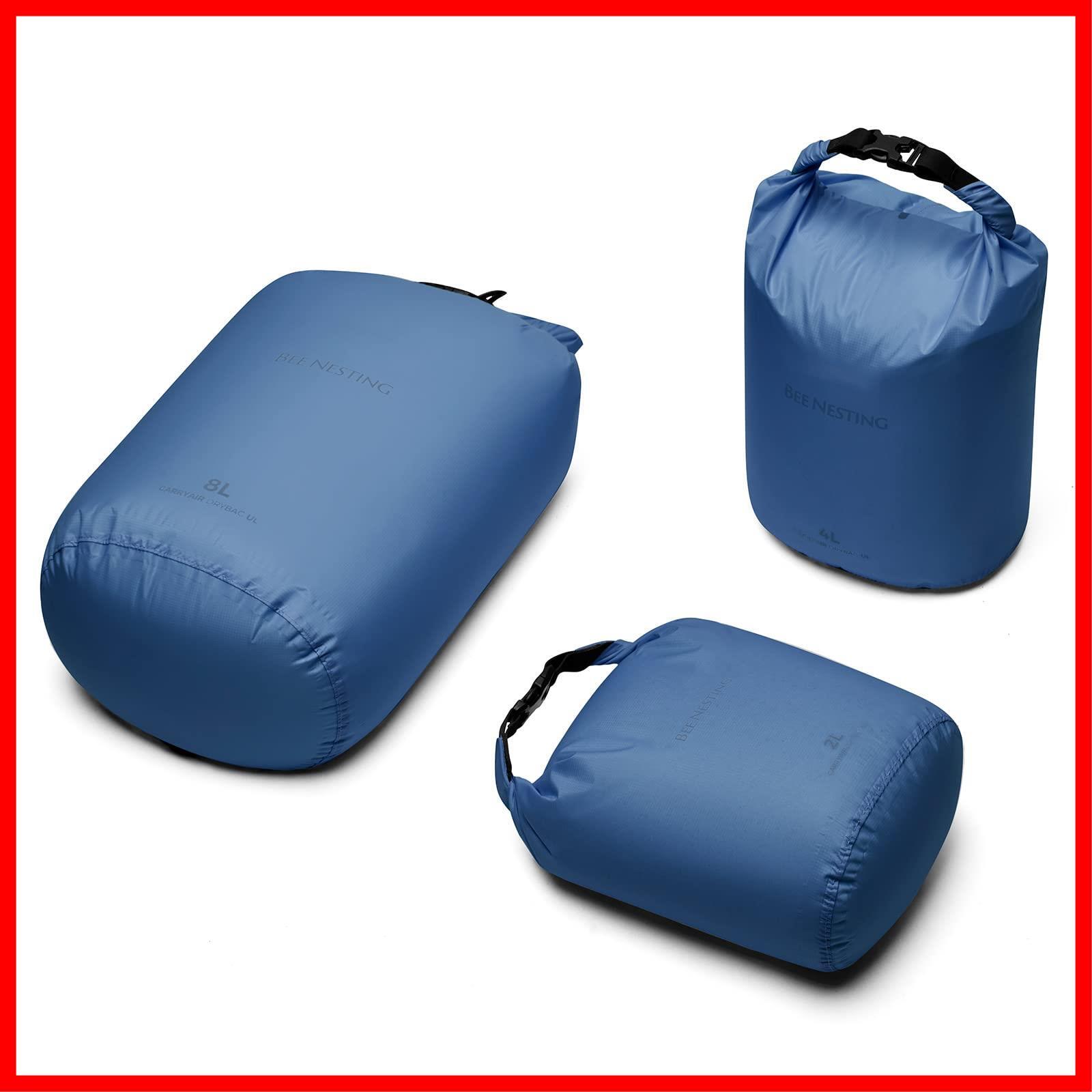 Bee Nesting 超軽量 ドライバッグセット バックパッキング用 防水ドライサック キャンプ ハイキング バイク用 軽量スタッフサック3枚セット (ネイビーブルー, 2L 4L 8L)…