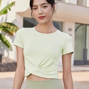 [Yomoment] ヨガウェア レディース 裾ねじり ラウンドネック 速乾 吸汗 ピラティス ウェア ストレッチ トップス 半袖 レディース シャツ ホットヨガトレーニング スポーツウェア トップス