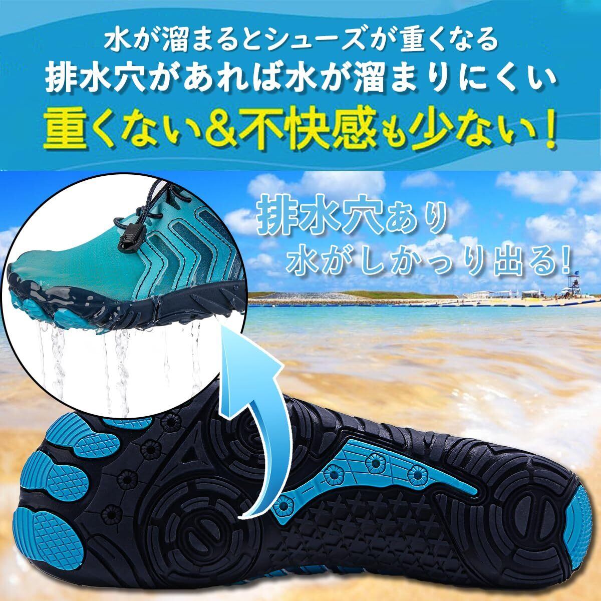 色:06_ブルー_サイズ:22.5 cm 3E軽量 ビーチサンダル 速乾性 通気性 シュノーケリング 男女兼用 アクアシューズ 水陸両用 ウォーターシューズ マリンシューズ [Noordinary]