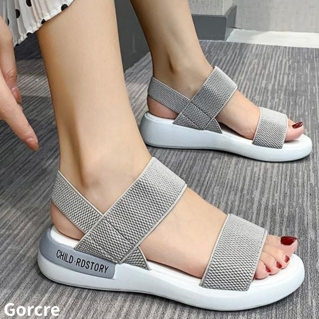 色:グレー_サイズ:22.5 cmレディース 伸縮 ストラップ サンダル 歩きやすい サマーシューズ スポーツ 軽量 厚底 美脚 カジュアル ビーチ ビーサン [Gorcre] アウトドア 普段使い