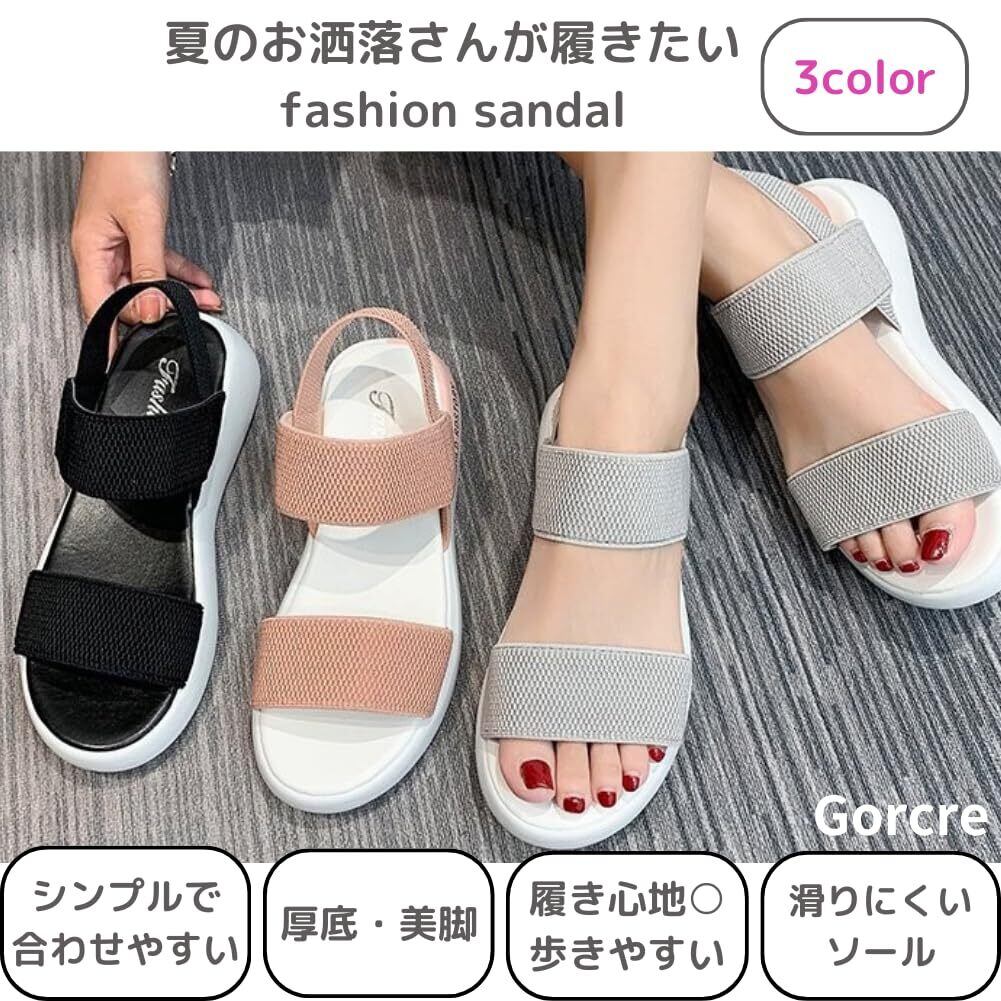 [Gorcre] カジュアル スポーツ サンダル レディース 伸縮 ストラップ 歩きやすい サマーシューズ 軽量 厚底 美脚 ビーチ ビーサン アウトドア 普段使い