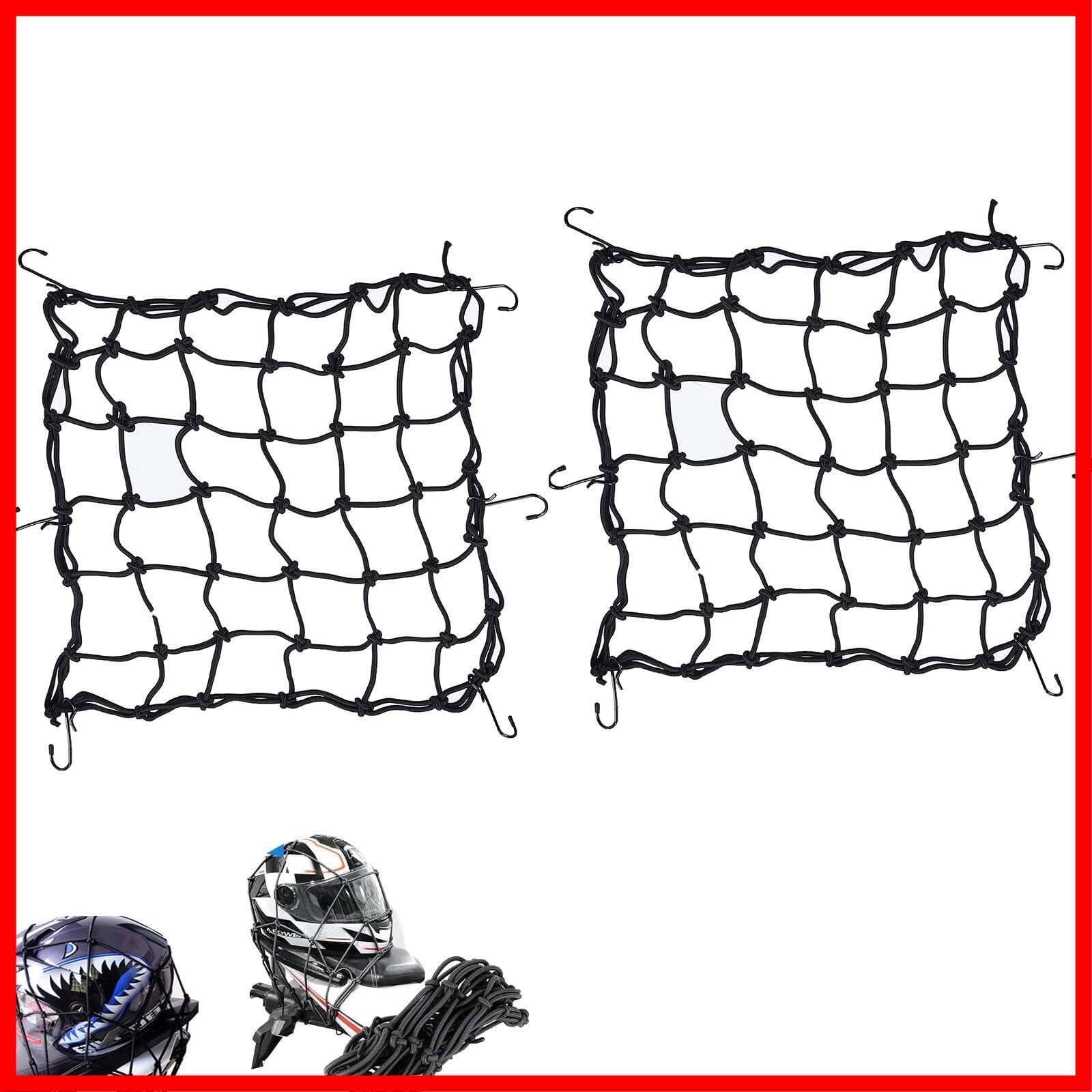 【特価セール】カゴ ネット荷物落下防止 伸縮性強い自転車 内装パーツ ネット荷物固定 バイクネット調整可能 収納スペース拡大カーゴネット落下防止ネットバイク ネットツーリングネットフック付き車 ネット 2個バイク 荷物(30x30cm,黑色)