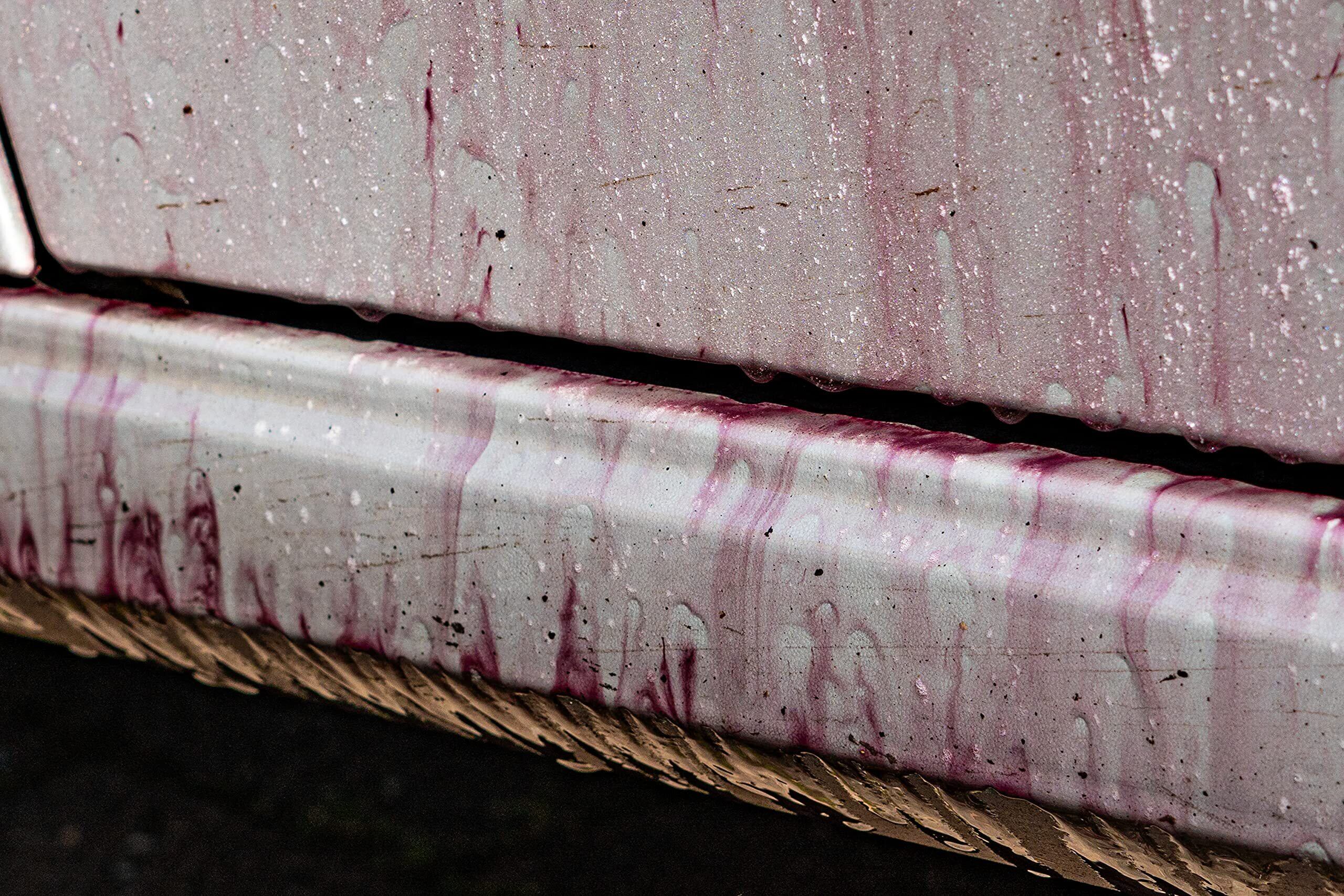 洗い流すタイミングをお知らせ:塗装上の鉄粒子と反応し、鉄粒子が溶解すると濃い紫色に変わり、洗い流すタイミングがわかります