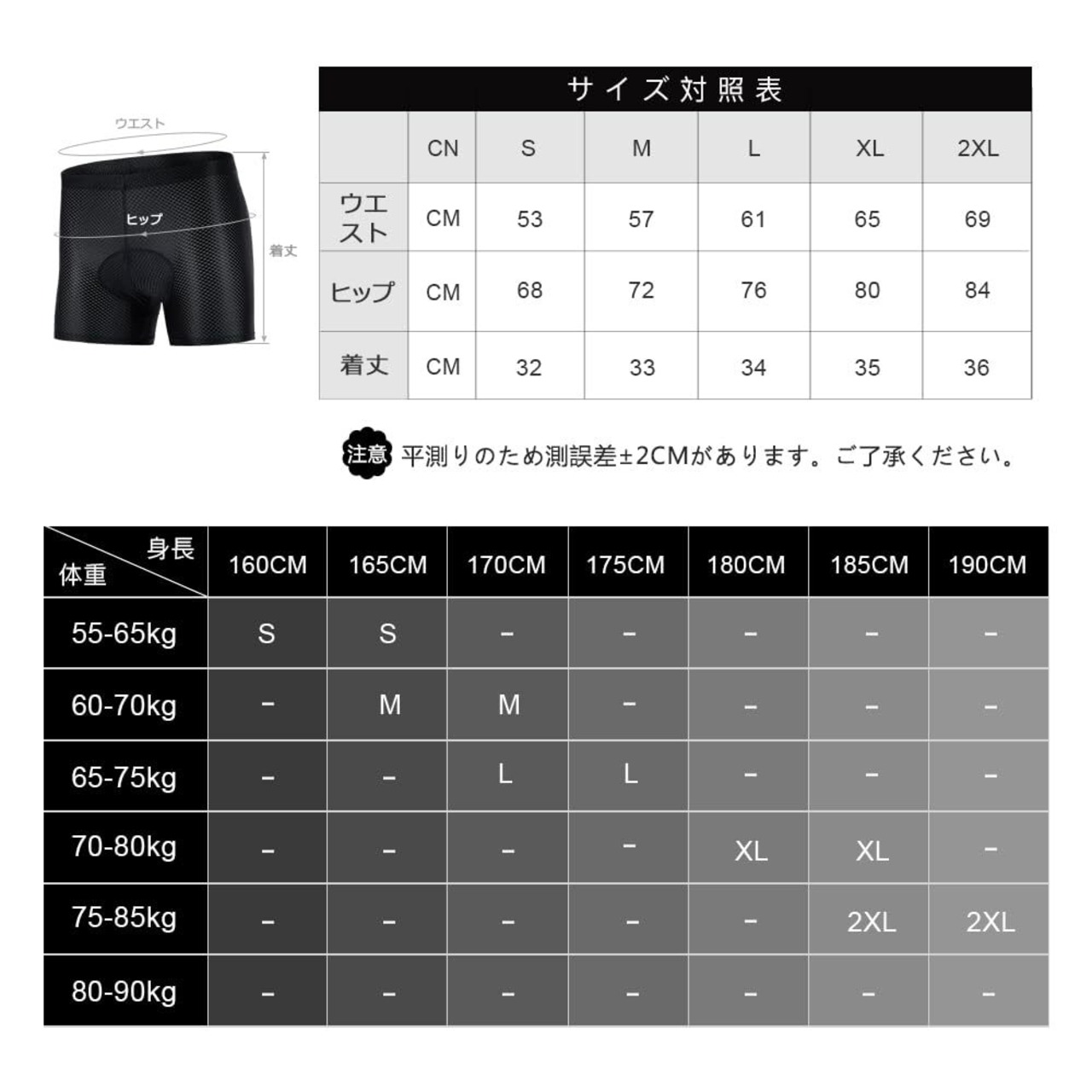【機能仕様】スポーツバイクに乗るときに履く、お尻の痛みを軽くしてくれる、パッド付きのサイクルインナーパンツ。普段着の下にも使えます。軽量<200g, 吸湿速乾, 痛み軽減。