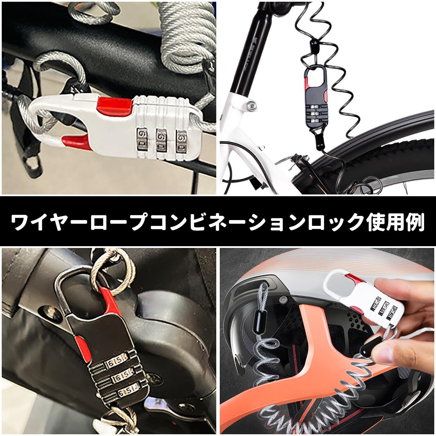 【新着商品】スーツケース ヘルメットロック バイク バイク ヘルメットロック 盗難防止 3桁ダイヤル式 自転車用鍵 ブラック+ホワイト ワイヤーロック ヘルメットホルダー 2個セット ヘルメット