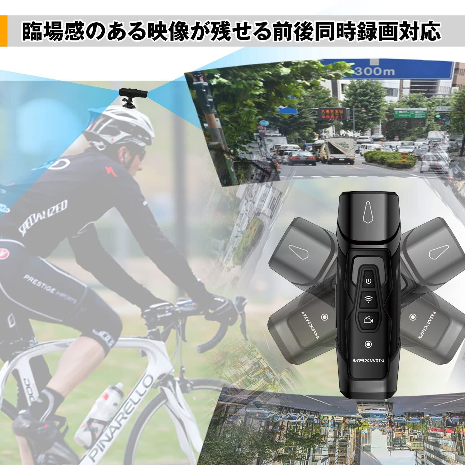 MAXWIN ドライブレコーダー バイク 自転車 2カメラ 前後同時録画 WiFi 200万画素 フルHD LED信号対応 IPX4 防水防塵 Gセンサー ループ録画 ウェアラブルカメラ アクションカメラ ハンドル ヘルメット装着 BDVR-A001