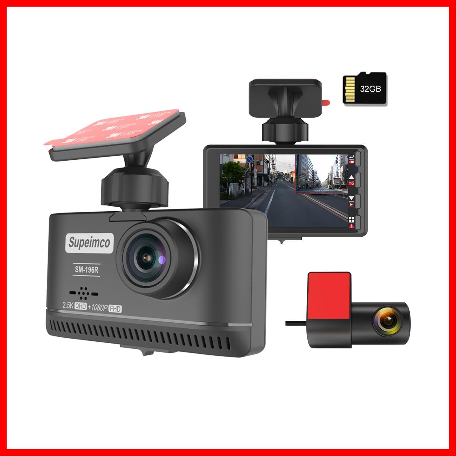 【電装店供給品 2.5K+1080p】3 inch IPSドライブレコーダー 前後2カメラ(前方400万画素+後方200万画素)QHD画質 小型ドラレコ 前後同時録画 32GBカード付き 160度超広角 耐熱構造 スーパーキャパシタ 電波障害対策 ノイズ対策 常時録画 衝撃感知 動体検知 車載カメラ 東西日本信号機対応 12V/24V対応 リアカメラ[日本語取説付]Supeimco SM-196R