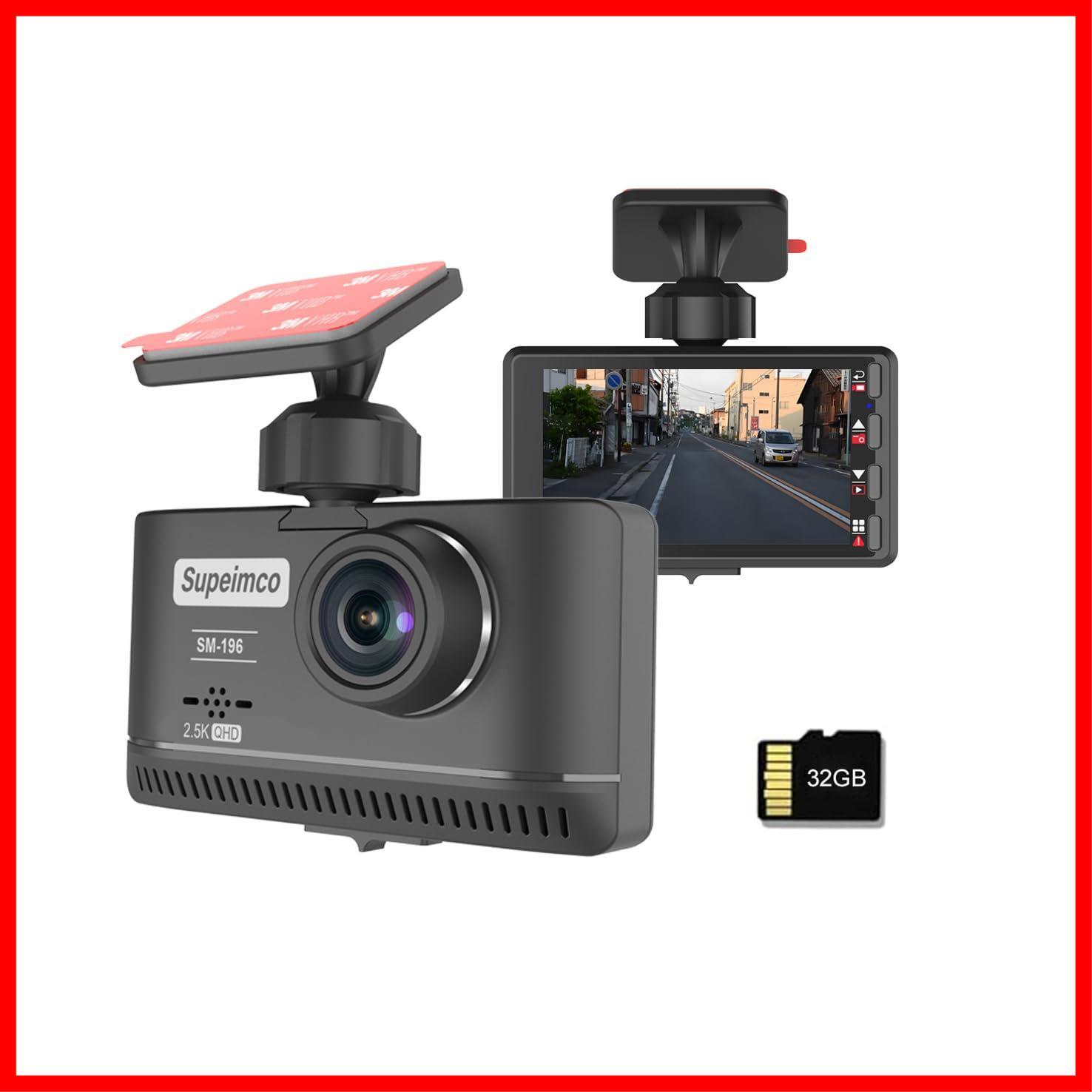 【電装店供給品 2.5K】3 inch IPSドライブレコーダー 前方400万画素 2.5k QHD画質 小型ドラレコ 前後同時録画 32GBカード付き 160度超広角 耐熱構造 スーパーキャパシタ 電波障害対策 ノイズ対策 常時録画 衝撃感知 動体検知 車載カメラ 東西日本信号機対応 12V/24V対応 リアカメラ[日本語取説付]Supeimco SM-196