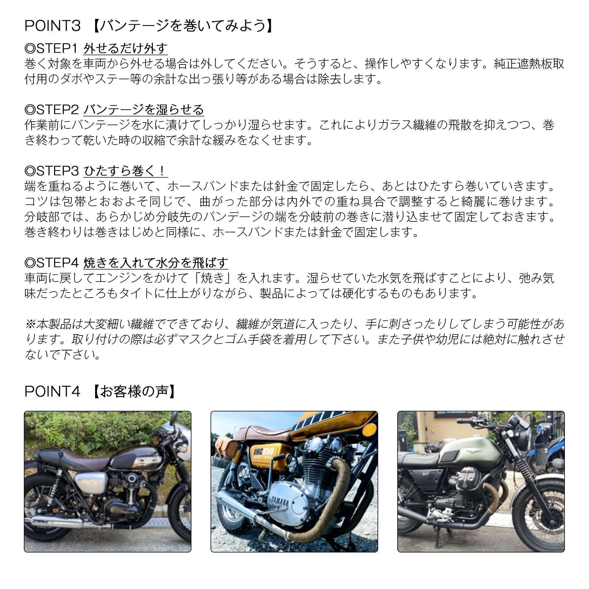 ●スーパーサーモバンテージ は、エキゾーストマニホールド、フロントパイプ、マフラーなど、薪ストーブ 煙突、高熱を発生する部品に巻き付けることで、放熱を抑制する耐熱バンテージです。