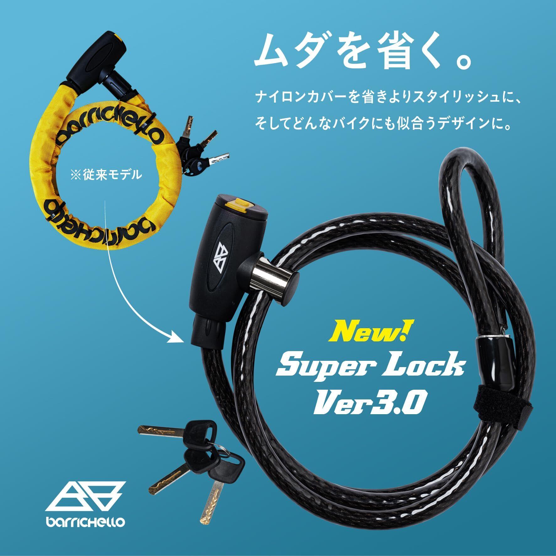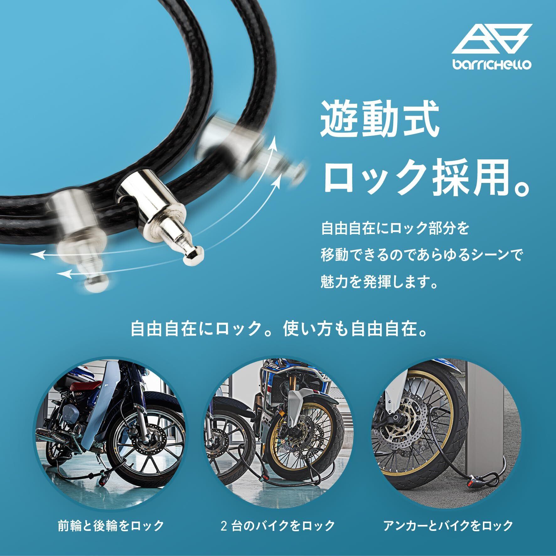 Barrichello(バリチェロ) バイクロック ワイヤーロック Ver3.0 遊動式 極太 6ヶ月保証 【ブラック 15mm×1850mm】 鍵3本付き 盗難防止 バイク 自転車 チェーンロック