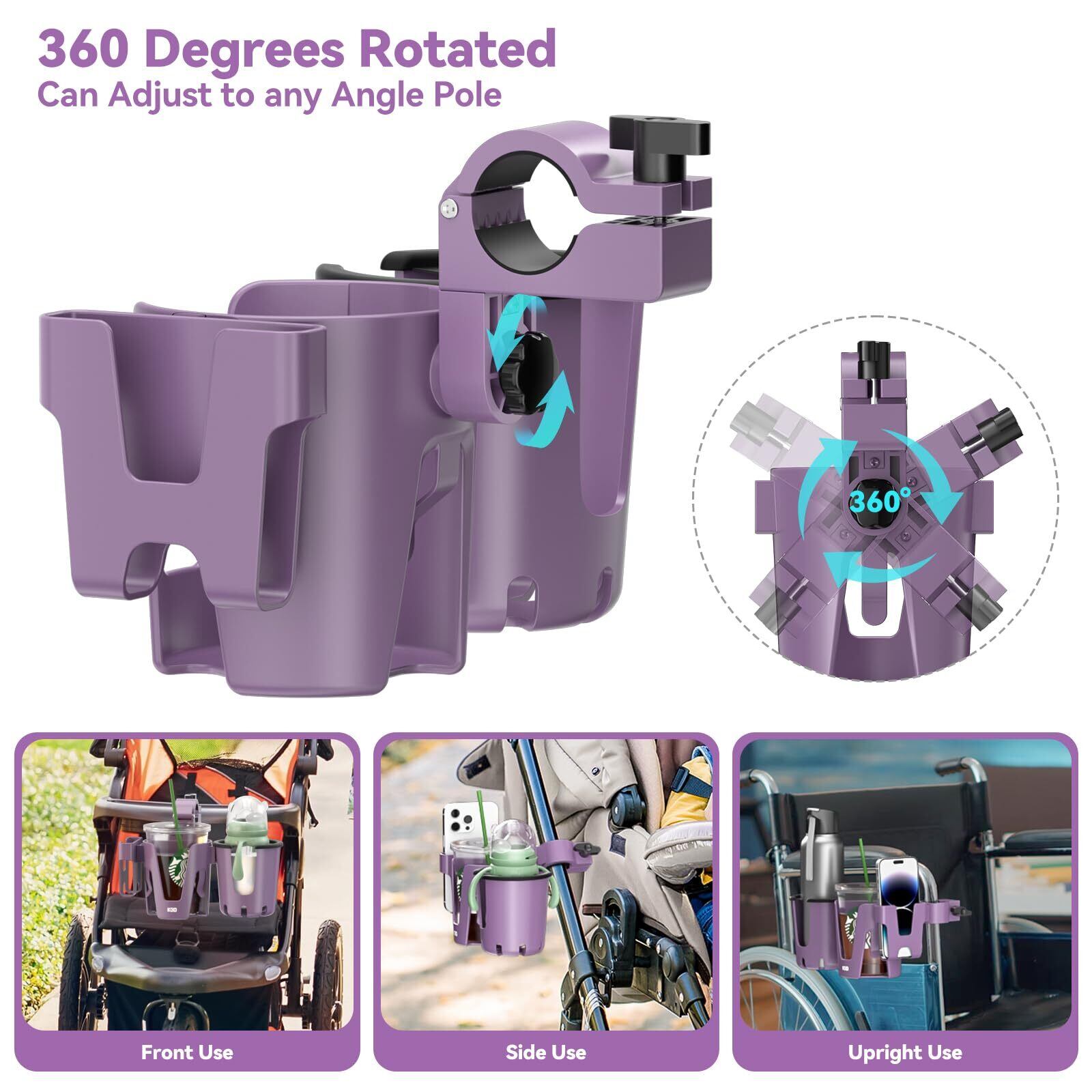 携帯電話ホルダー付きKDDベビーカーカップホルダー、3-in-1 取り外し可能な自転車ドリンクホルダー、車椅子、ストローラー、バイク、ウオーカー、スクーター、Uppababy, Nuna, Bugaboo, Doonaに適用するボトルホルダー (パープル)
