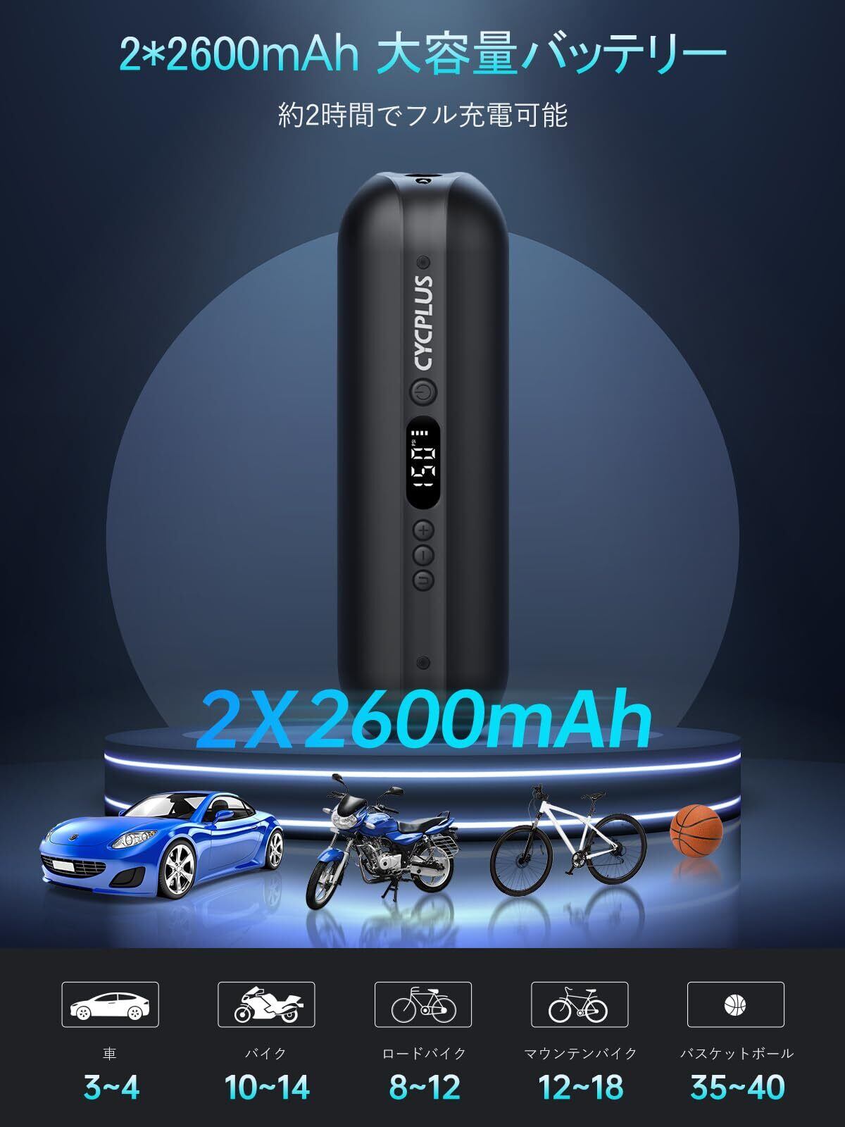 【新春セール】クロスバイク バイク ロードバイク 小型電動エアーポンプ 携帯 usb充電式 くうきいれ 多機能 CYCPLUS ボール 空気入れ 仏米英式 自転車