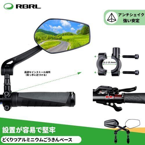 RBRL自転車バックミラー視野幅360度調節可能取付簡単