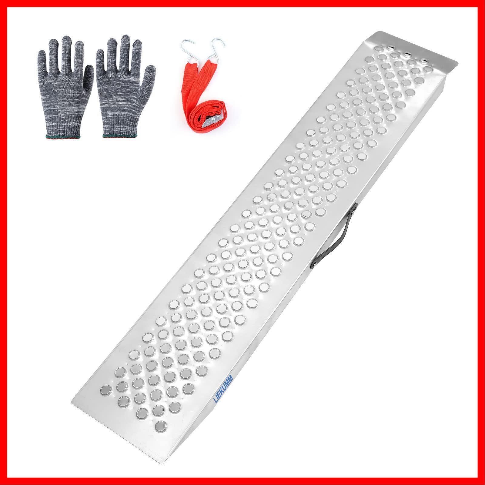 LIEKUMM ラダーレール バイク スロープ ローディングレール スチール製 耐荷重300㎏ 滑り止め 安定 耐久 手袋付き バイク積載 トラックローディング 貨物運搬 1本 長さ120㎝×幅23㎝ (シルバー)