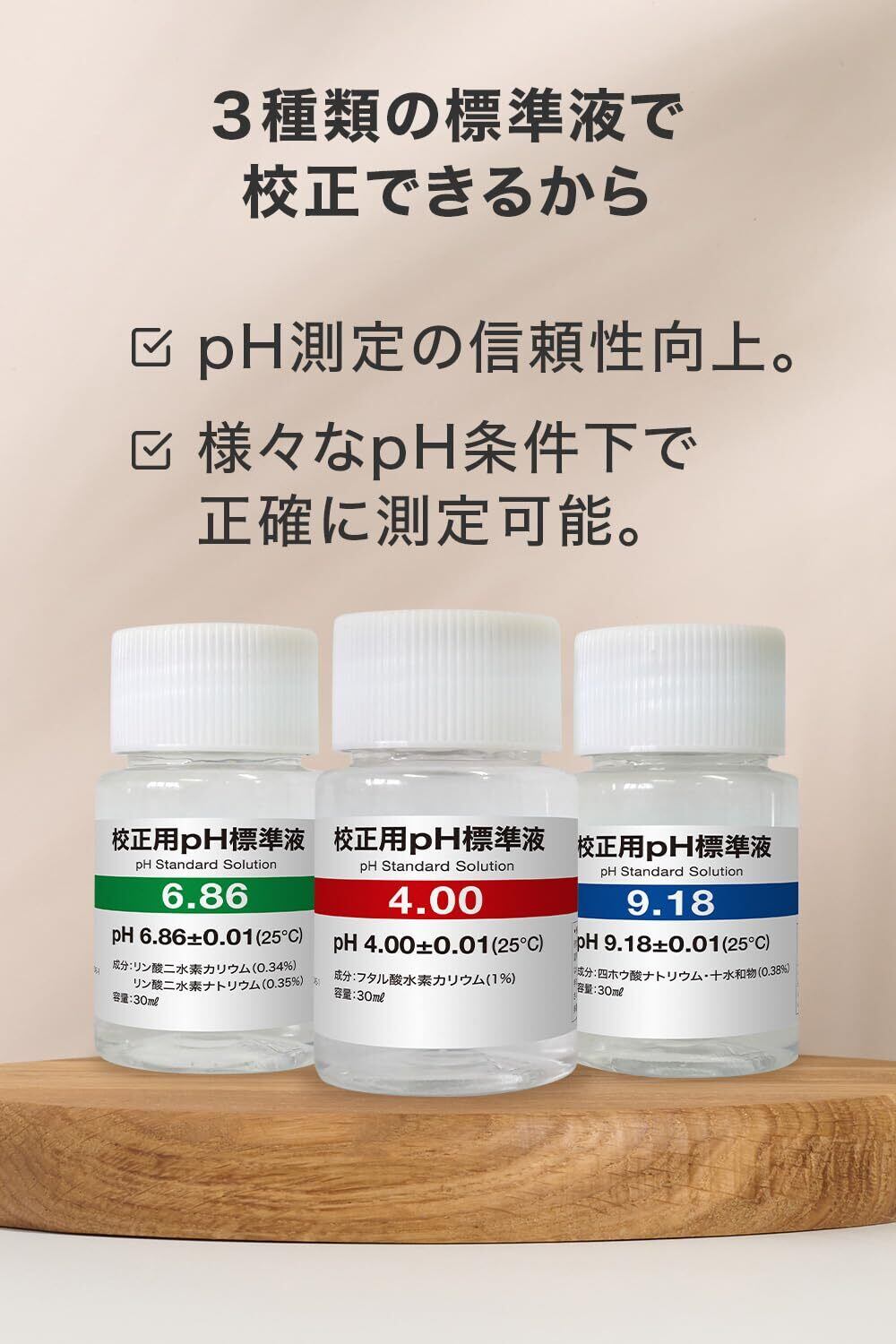 【標準液3種がセット】3種類の標準液で校正できるから様々なph条件下で正確に測定できます。