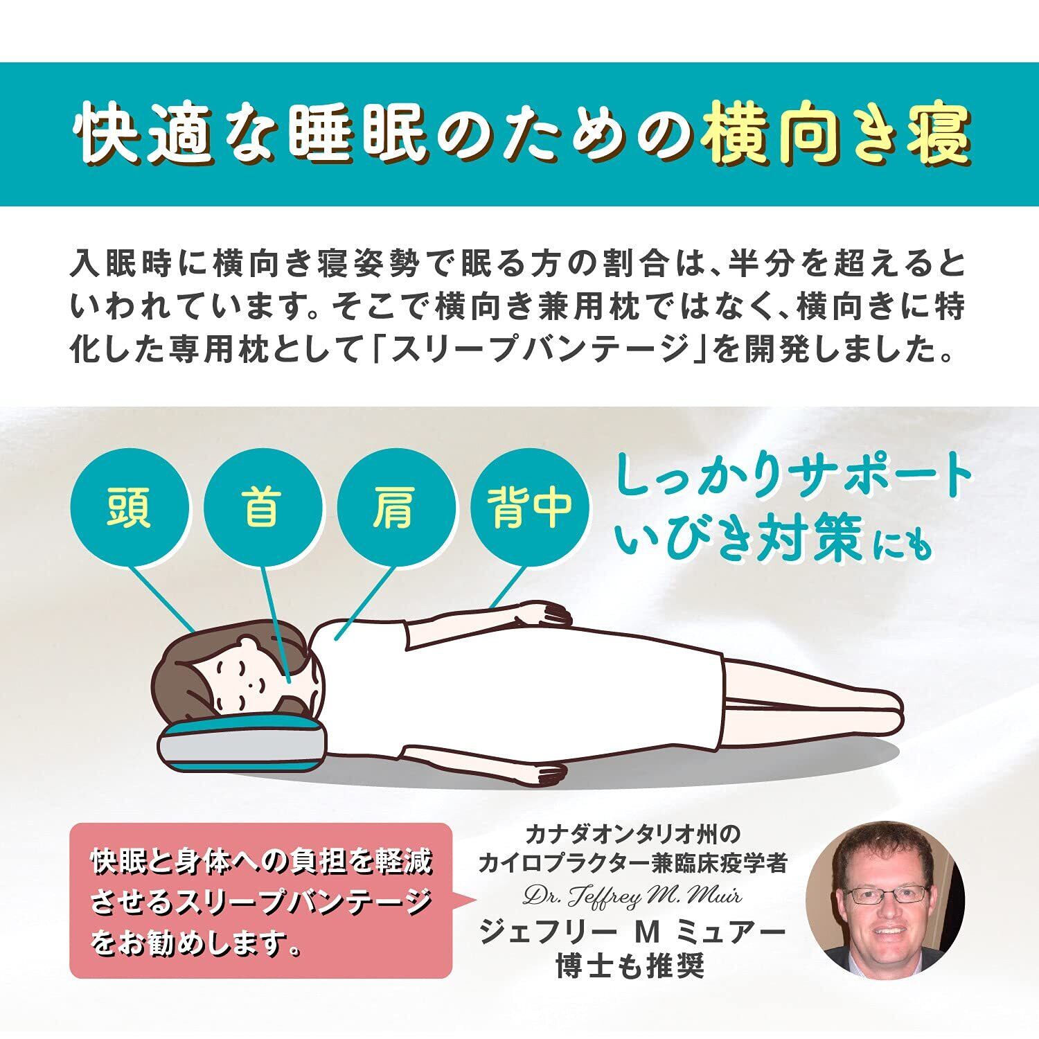 安眠のための横向き寝用まくら。頭・首・肩・背中をしっかりサポートする横向き寝用まくら「スリープバンテージ」。快適な寝姿勢を得られる「横向き寝」を促進する枕です。