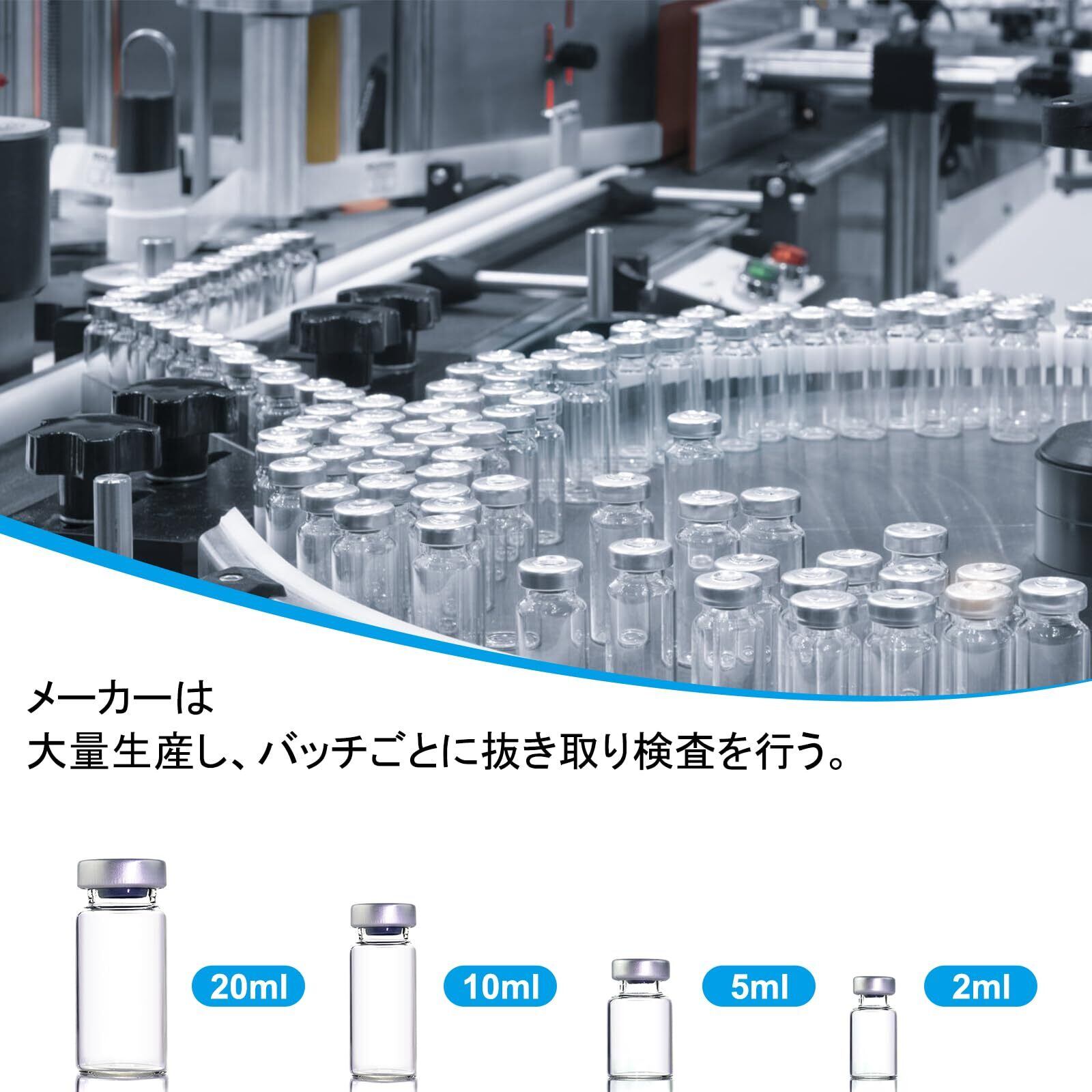 蓋付きガラス保存ボトル サイズ: 10本 10mlバイアル,外寸:直径約20mm×高さ約50mm、滅菌済み、パイロジェンフリー、空バイアル。