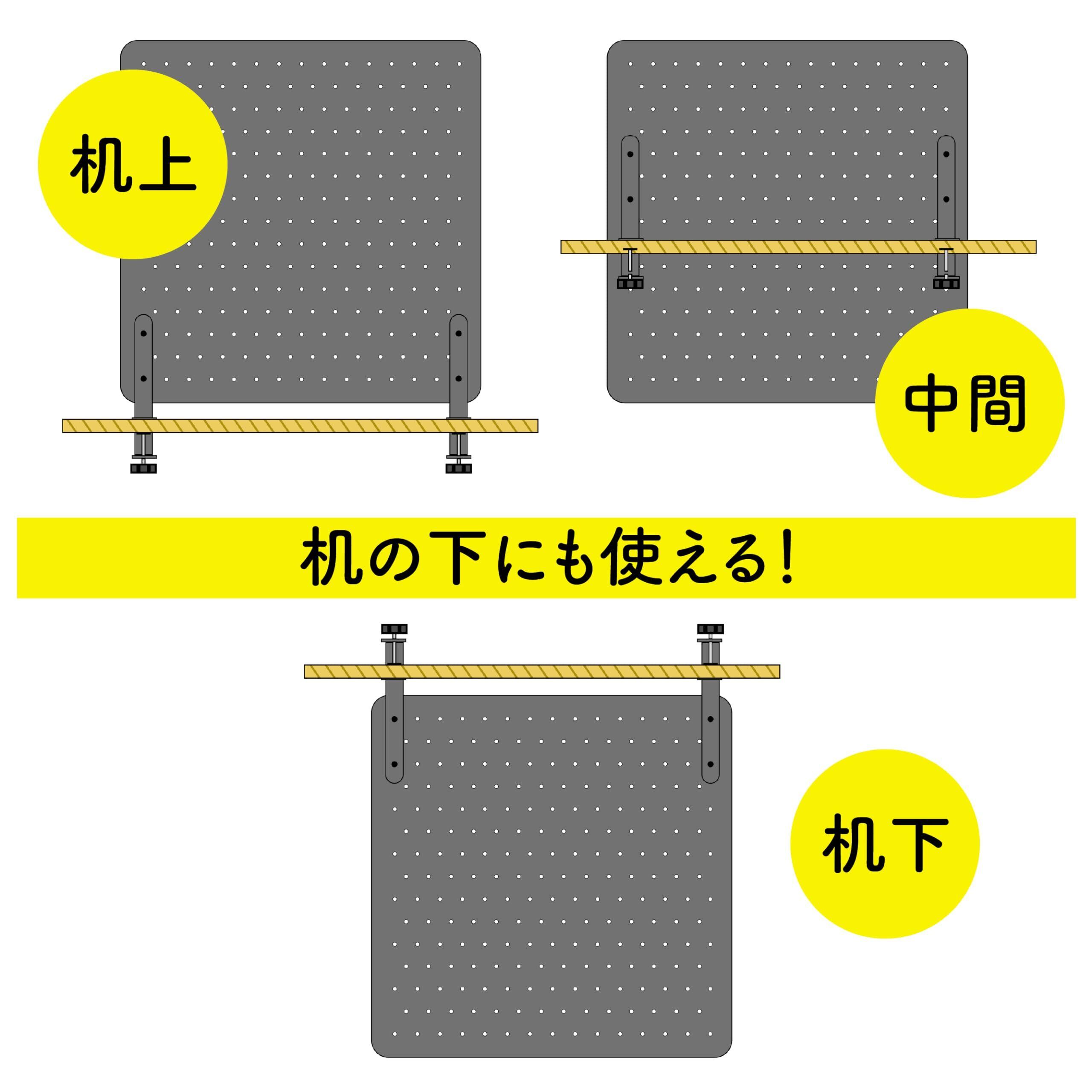 色:ブラック卓上収納 有孔ボード クランプ式セット ペグボード 幅40cm パンチングボード 穴 穴径5mm Noilla 穴ピッチ25mm 取付簡単 おしゃれ ゲーミング 小物収納 フック トレー付き (クランプ式セット ‐ 黒)