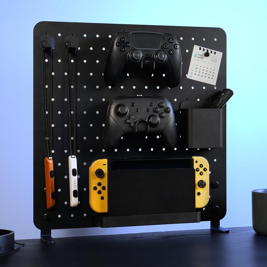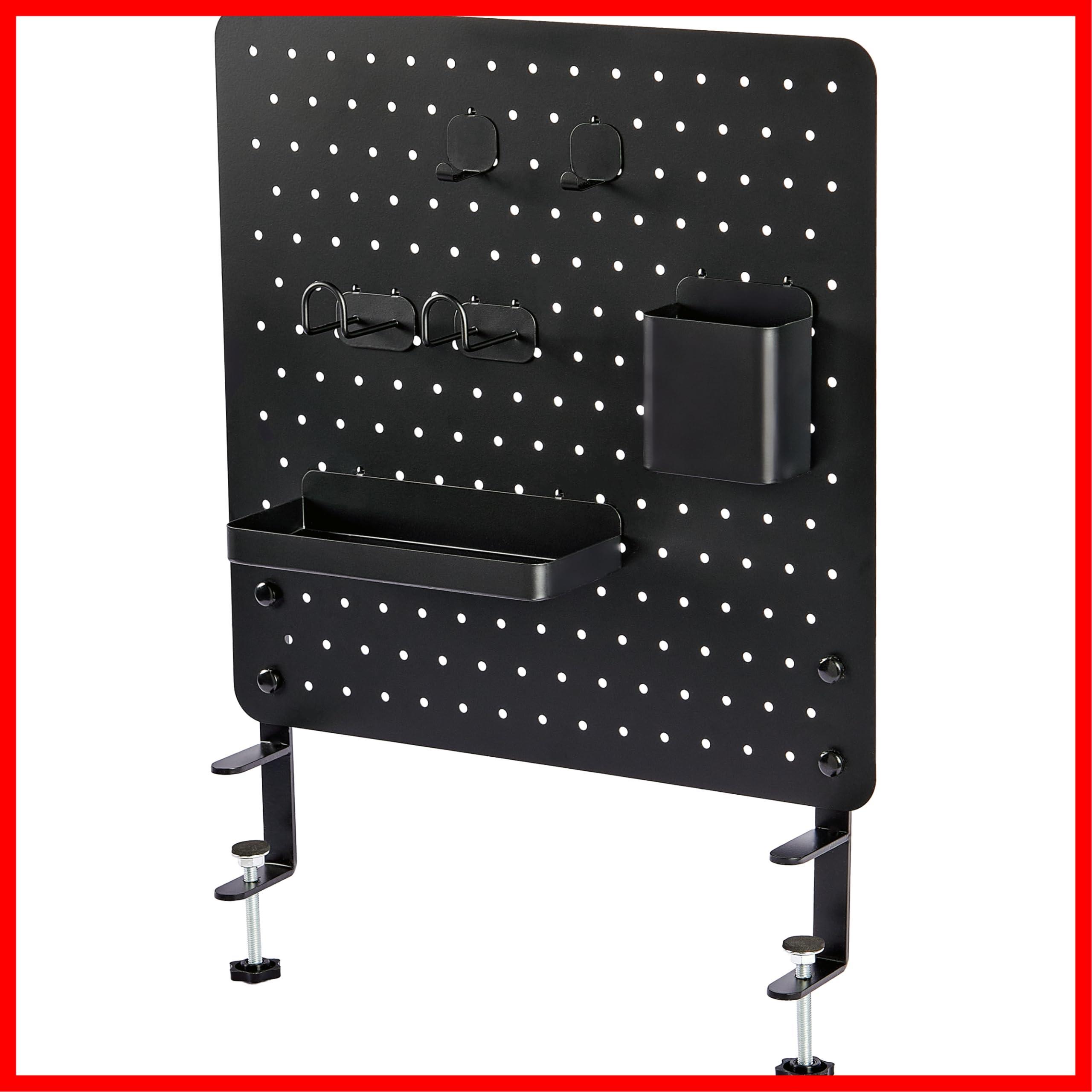 Noilla 卓上収納 有孔ボード クランプ式セット ペグボード 幅40cm パンチングボード 穴 穴径5mm 穴ピッチ25mm 取付簡単 おしゃれ ゲーミング 小物収納 フック トレー付き (クランプ式セット ‐ 黒)