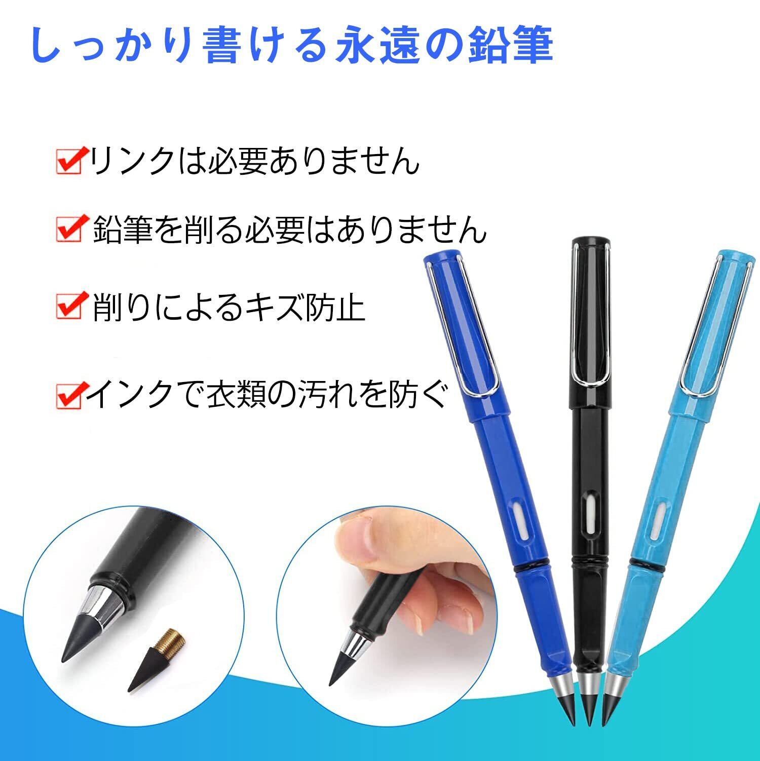 鉛筆 永久鉛筆 永遠の鉛筆 インクレスペン 削らない 鉛筆 HB 書き切れない 3本セット鉛筆 インクいらないペン 芯のない鉛筆 再利用可能 えんぴつ ペン おもしろい鉛筆 石墨芯 消しゴム付き