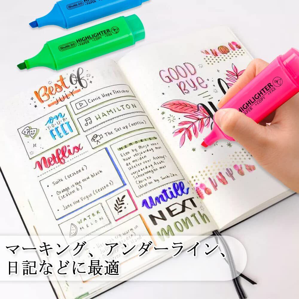 Shuttle Art 蛍光ペン 8色セット 蛍光マーカー 明るい色 チゼルチップ 水性 速乾 大容量 アンダーライン マーキング 色塗り ハイライト 手帳デコ イラスト ノート 女の子 勉強 仕事 趣味 学校 オフィス