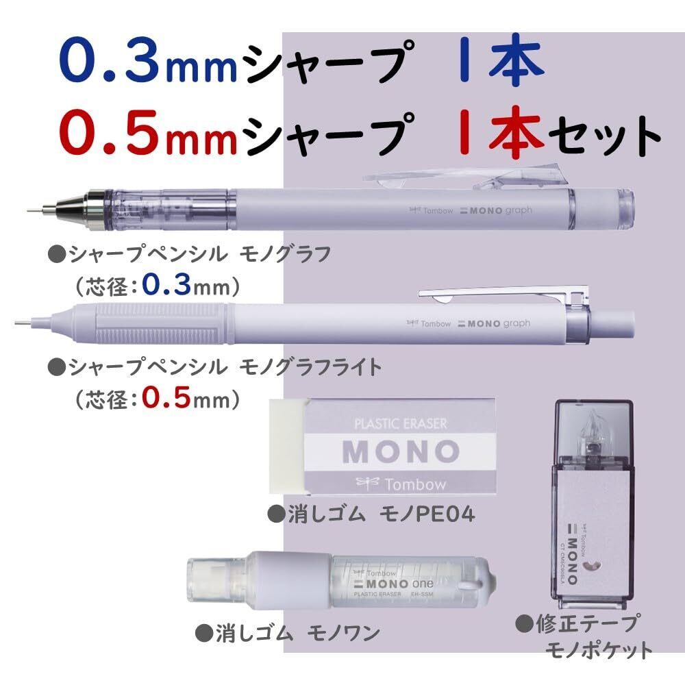 【在庫処分】トンボ鉛筆 MONO ミネラルカラー 文房具セット シア―パープル (シャーペン0.3mm シャーペン0.5mm 消しゴム×2個 修正テープ) PCC-544EAZ