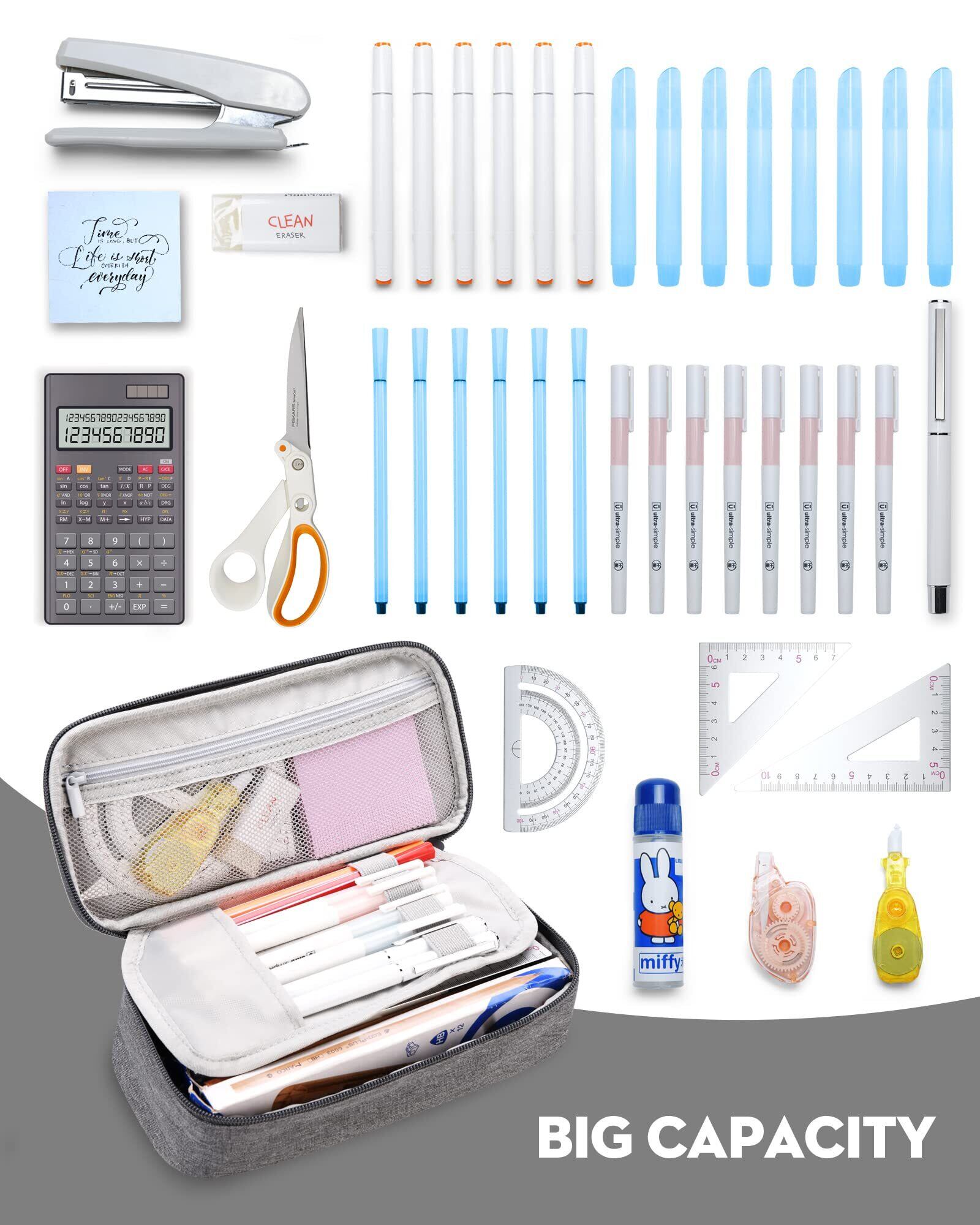 YOKUMA 鉛筆ケース 大容量 鉛筆ポーチ 美しいジッパー鉛筆ボックス 新学期用品 大学生 子供 ティーン 大人用, パープル, 筆箱 (Gray)