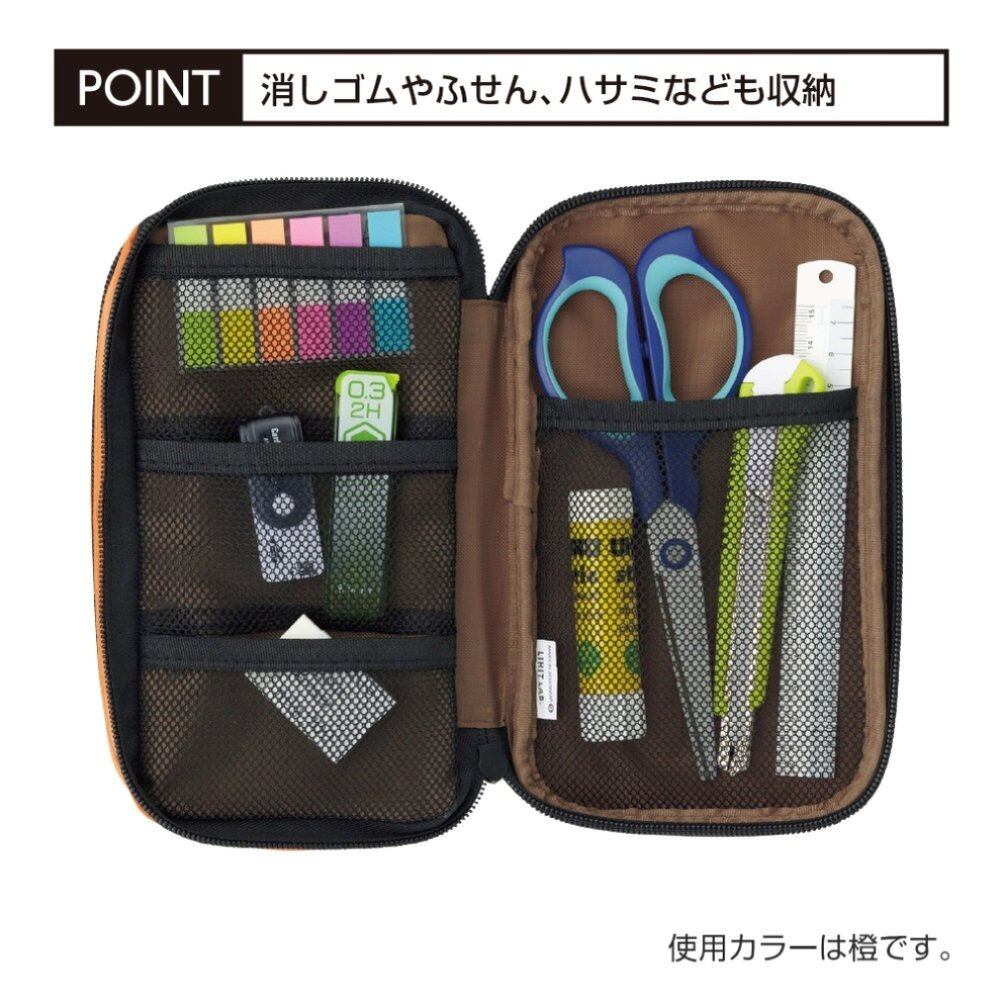見開き式なので、ペン・鉛筆・マーカー・文具小物をスッキリ整理できる。