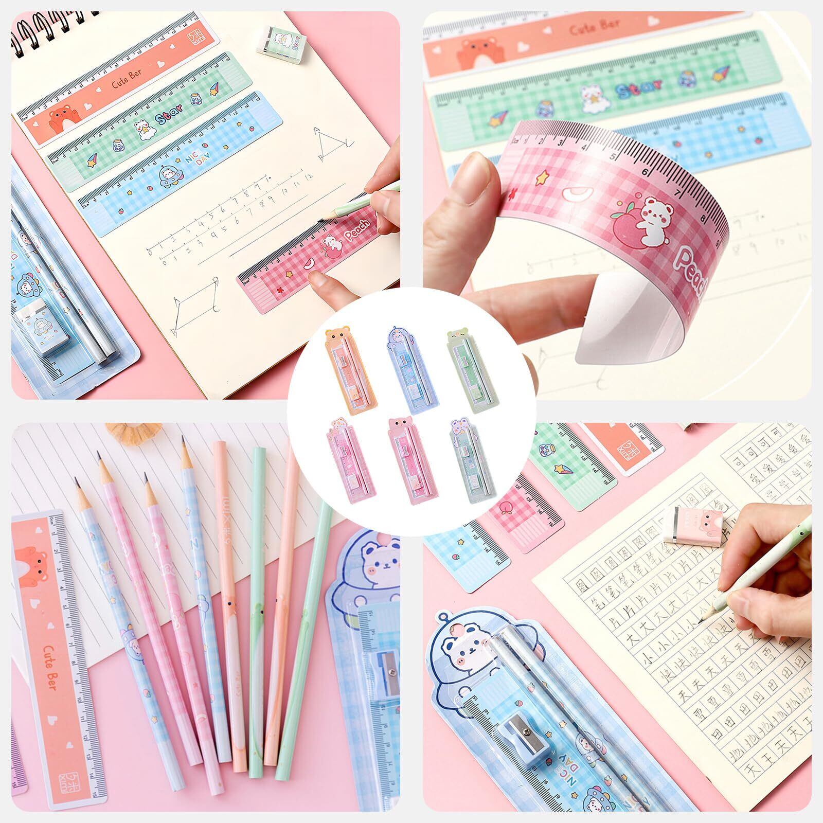 【高品質素材】鉛筆は環境にやさしい無毒無害のリサイクルできる木材を採用され、定規や鉛筆削りは高品質なプラスチック素材で作られており、丈夫で長持ちします,書くことで素晴らしい経験を得る!鉛筆には黄色の熊、青の熊、ピンクの熊、緑の熊、緑の猫、ピンクの猫の6種類の異なるデザインがあり、合計6セット出荷、出荷はランダムなデザインです。