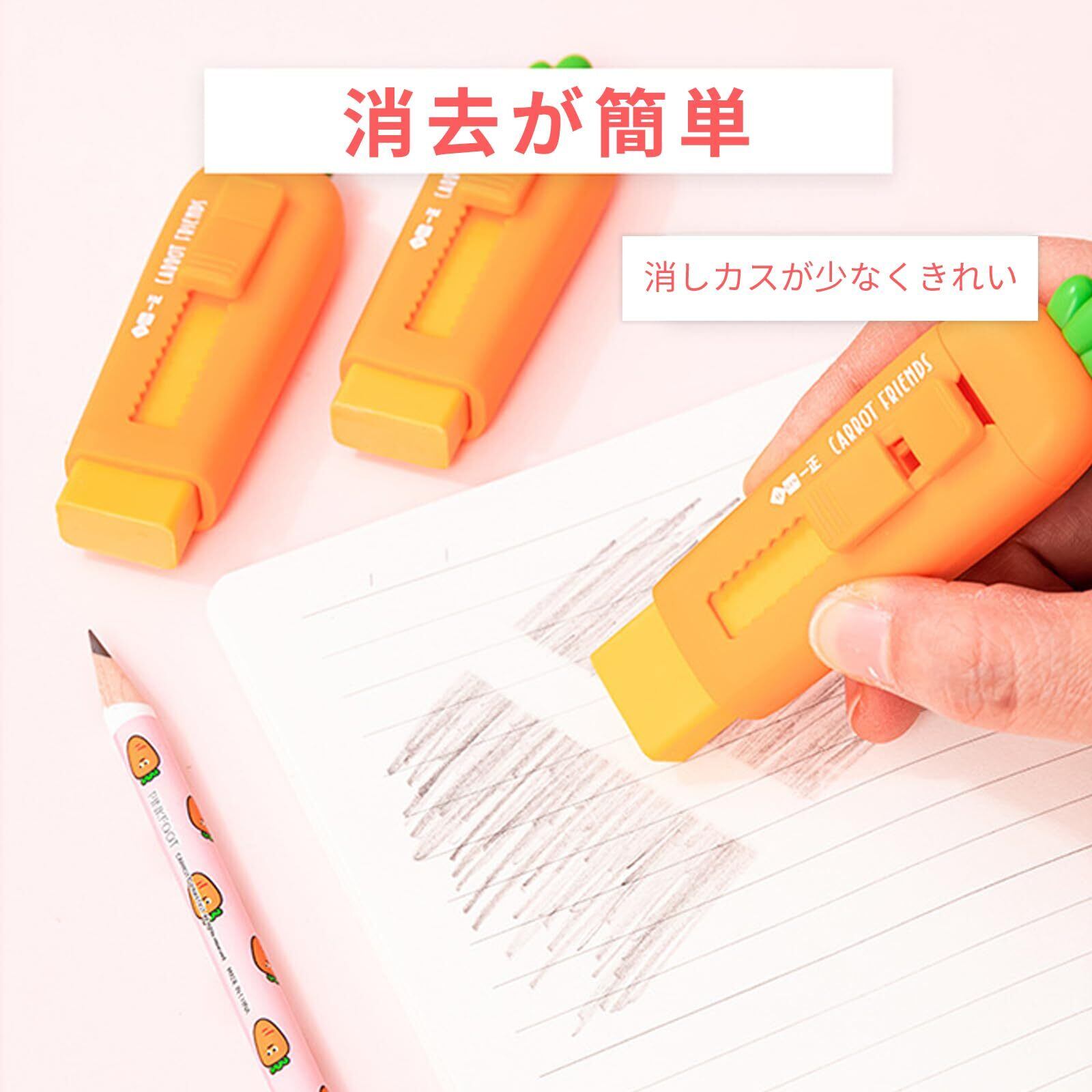 【数量限定】デッサン用 学習用プチギフト 女の子おしゃれおもしろ消しゴム 面白い文房具セット 文房具 可愛い ニンジンの形 ペン 消しゴム 消しゴム スティック消しゴム2個セット よく消える 小学生 aninako