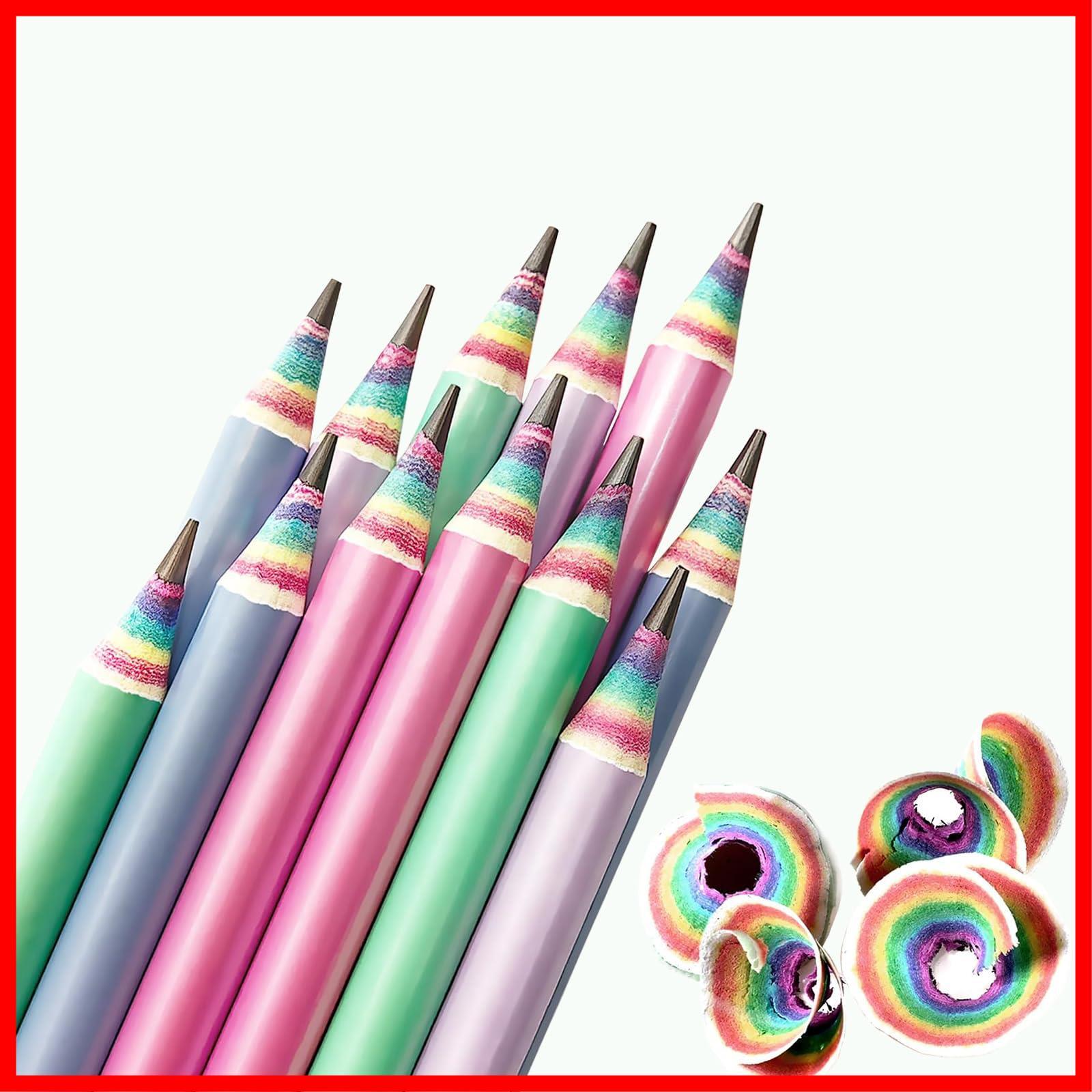【斬新なデザイン】レインボーペンシルの内側は、再生紙で作られた美しい虹の形。鉛筆を削ると、先端に美しい虹が現れ、幻想的な描き心地を体験できます。レインボーペーパー2Bペンシル外装 ピンク、ブルー、パープル、イエロー、グリーン、オレンジの鮮やかなパールカラーでデザインされ、先端はレインボーカラー(ご注意ください鉛筆の替え芯はすべて黒)。 合計12本入り。12本セット(1ダース)で、お得に楽しめま。