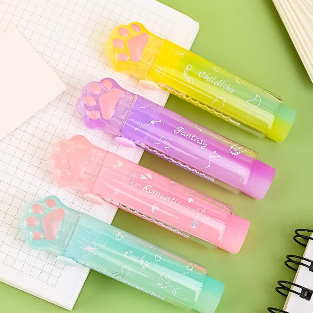 【ケース本体カラー】カラフル 消しゴム4色+鉛筆+鉛筆削り 6個セット,猫の肉球デザインの可愛らしいケースに入ったスティック消しゴム 楽しくかわいいデザイン 可愛いネコの手の形をしたスティック型消しゴムの猫足文具をデザインの異なる1個セットでご提供します。サイズ:95mm×25mm×15mm/個
