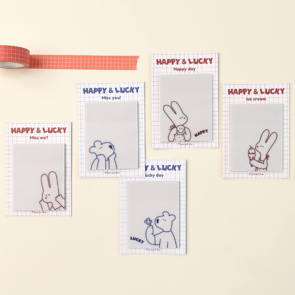 モノライク ハッピーアンドラッキー ドローイング·トレーシング スティッキー Happy and Lucky Drawing Tracing Sticky it -メモ、30枚、トレーシングペーパー、55x70mm、5つのデザイン
