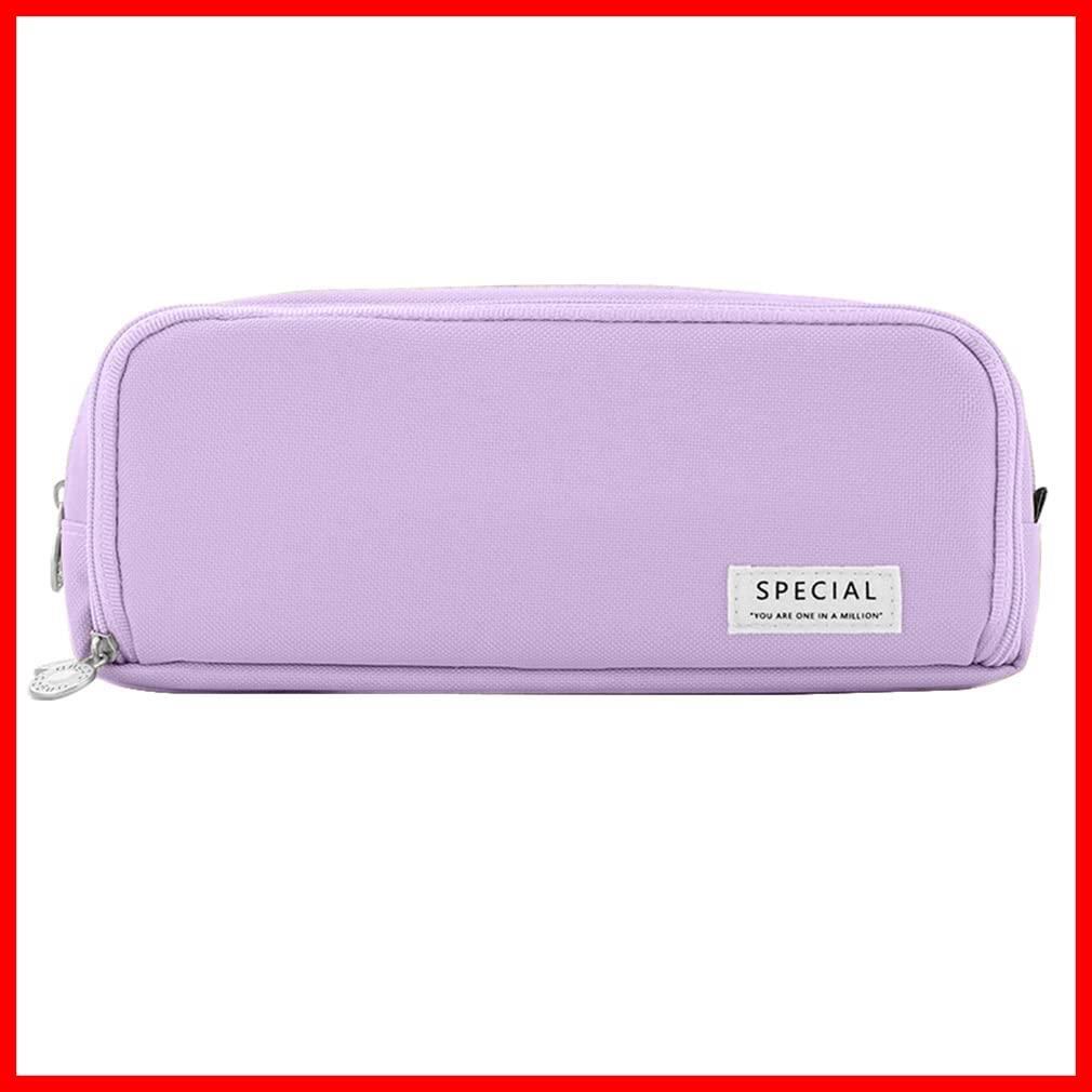 iSuperb ペンケース ダブルオープン 纯色 ブラック ネイビーブルー ショウガ グリーン ブルー ピンク 大容量 筆箱 小物収納 学生用 高級 パープル (パープル)