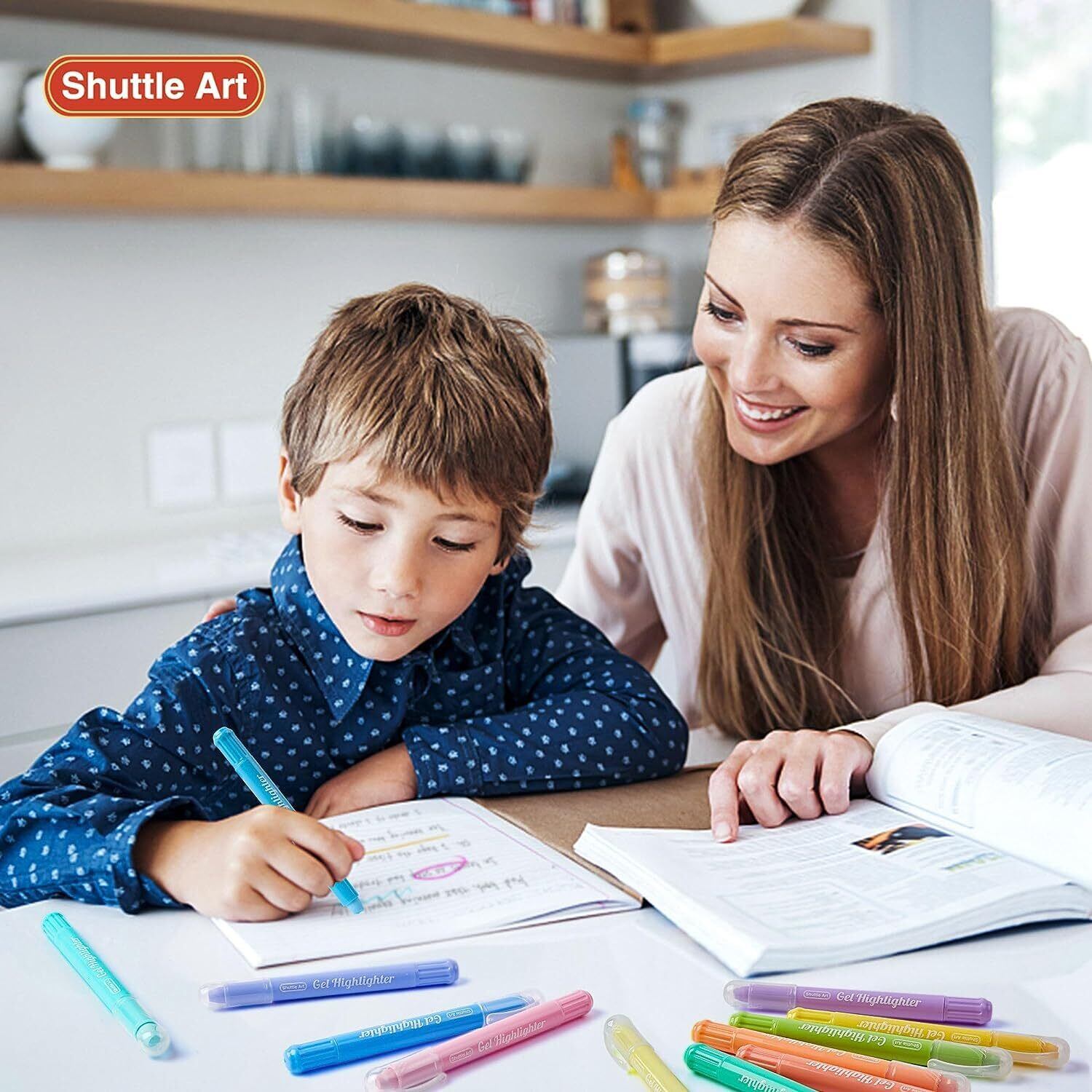 Shuttle Art 蛍光ペン パステルカラー 12色セット 固形蛍光マーカー 蛍光クレヨン 淡い色合い 速乾 裏移りしにくい 繰り出し式 ゲルインク 透明ケース付き 教科書/ノート/カレンダー/手帳にマーキング 色塗り 子供 女の子 勉強 仕事 学校 オフィス 聖書用 収納便利