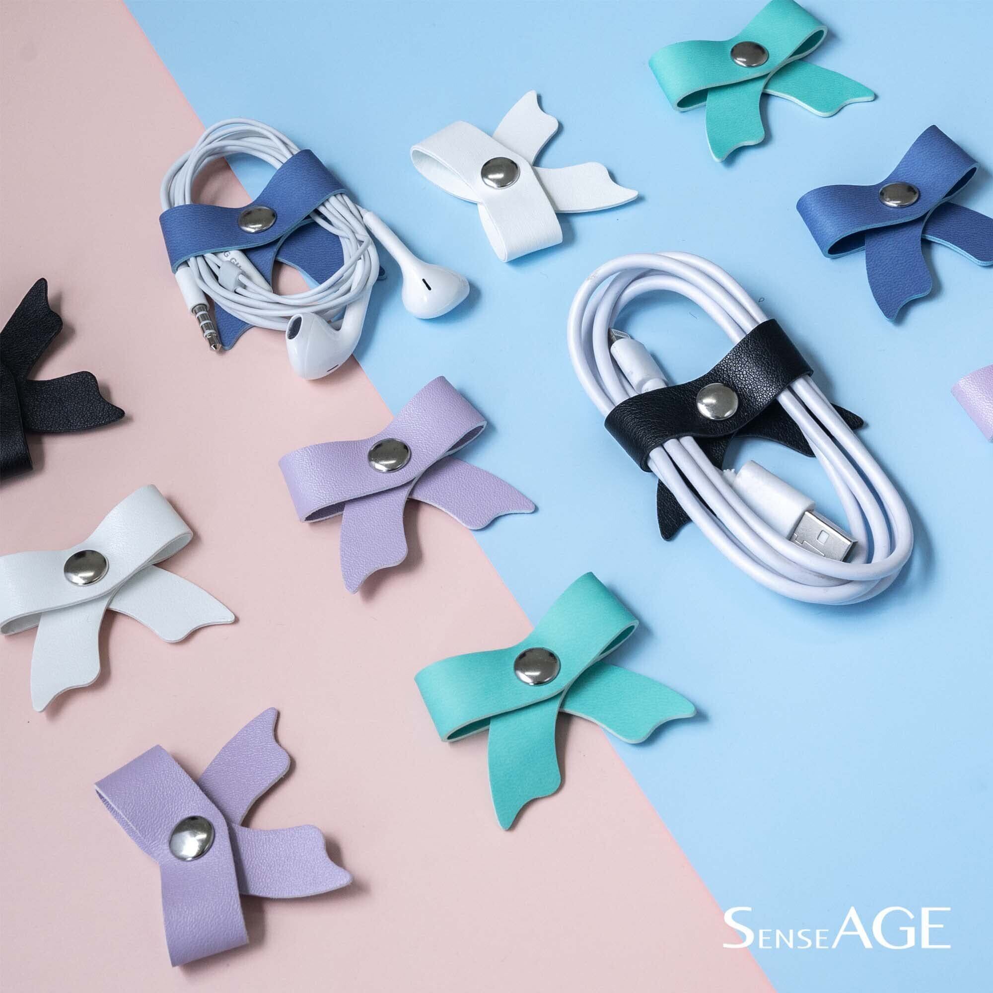 色:ブラック_サイズ:S(幅50mm ブラック - 配線まとめ x 収納 整理 コード巻取り イヤホンクリップ 文房具 長さ37m) 可愛いリボン PUレザー [5本セット] ケーブルクリップ SenseAGE