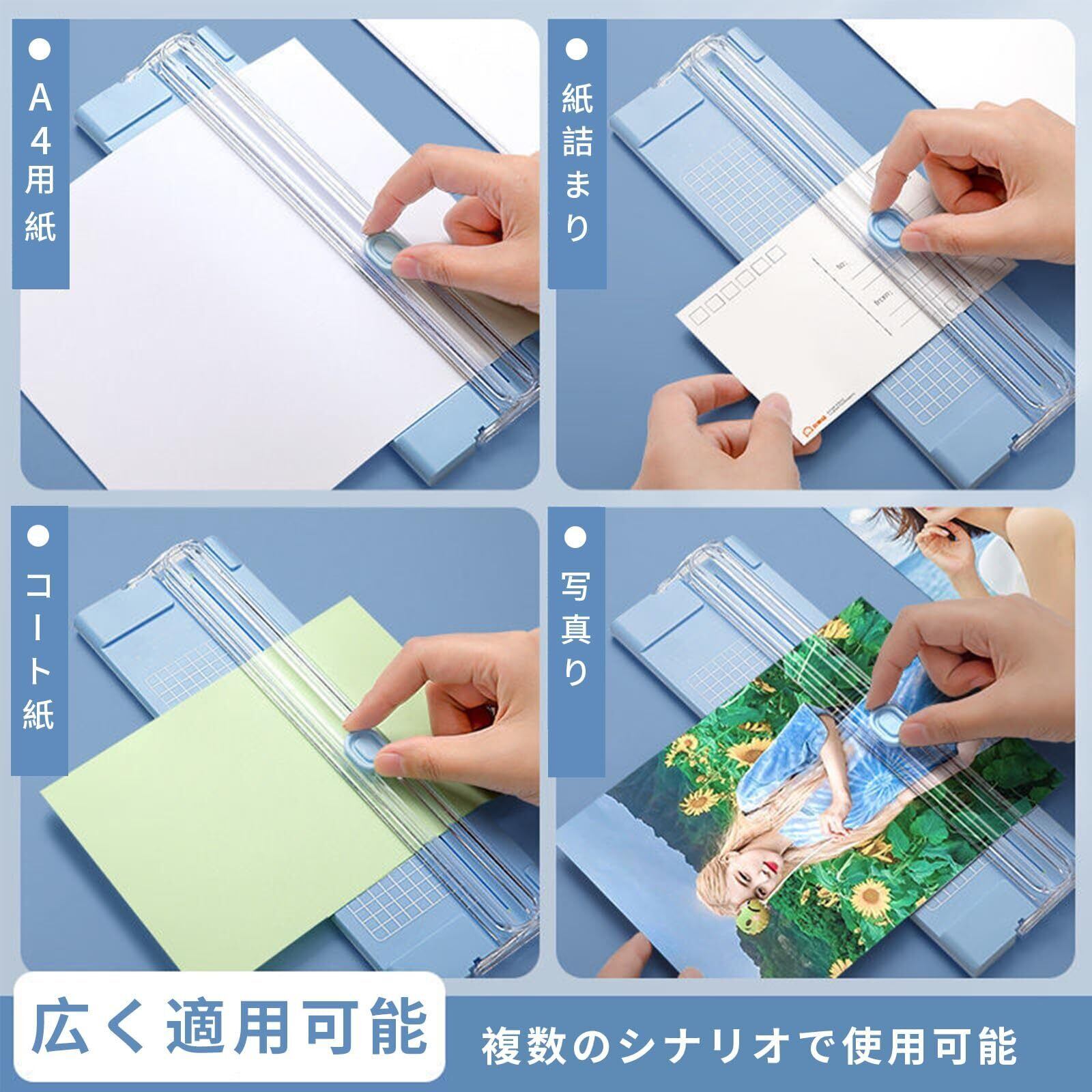 【ミニ裁断機】紙(A4サイズ対応)、 紙最大3-5枚裁断でき(コピー用紙80g/㎡使用時) 、個別の携帯用保護フィルム、パウチフィルム、硬いボール紙、カード、写真、コピー用紙など裁断、もコンパクト便利な裁断機です、オフィス、家庭、会社あるいは DIYに適用します。